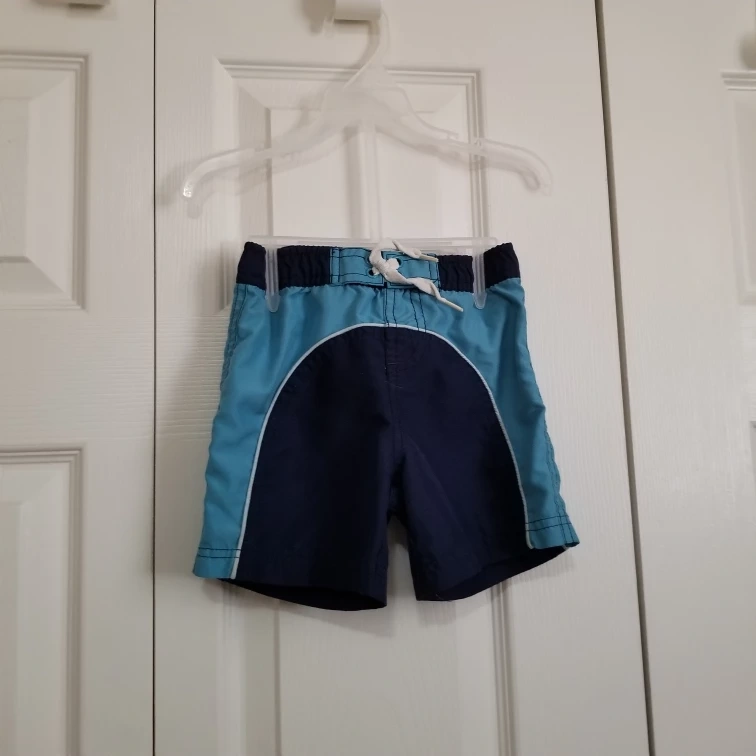 Selling a pair of boys swim trunks in excellent condition! They feature a cool blue and navy colour scheme. Perfect for the pool or beach! 2T