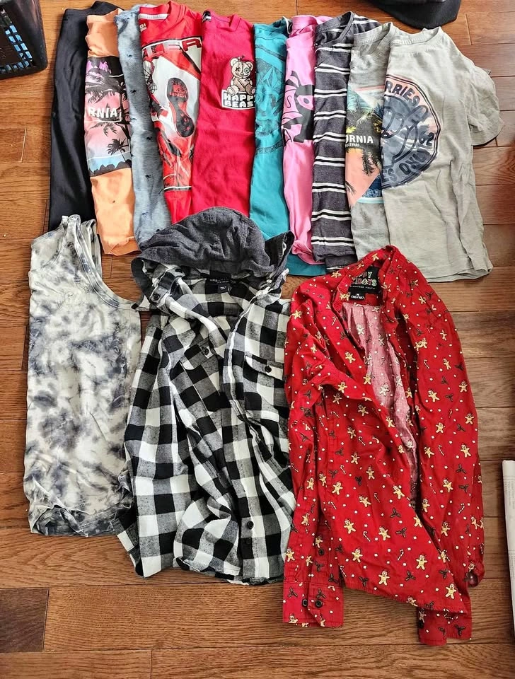 Everything Size 10-12 youth. Smoke free/clean home. Good condition. No stains. 1 winter or fall jacket 1 muscle shirt 3 Pants 8 Shorts 10 Shirts 2 long sleeve shirts Everything for $50. Cash only. Located in Minesing.