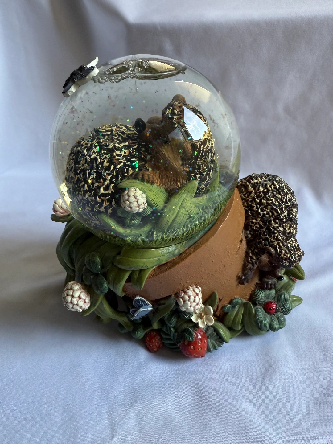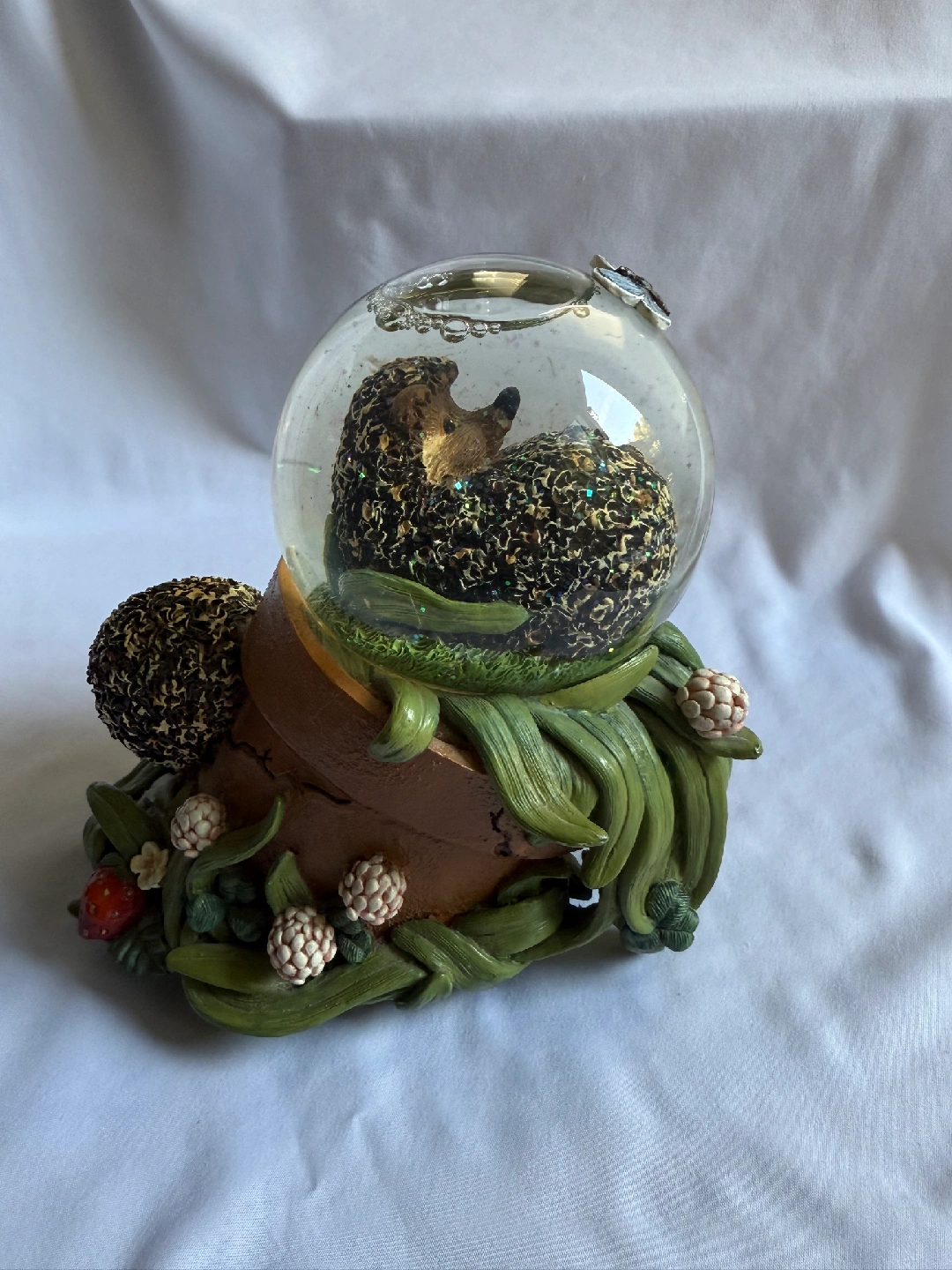 Bramble & Clover Hedgehog Musical Snow globe "It's a Small World" Rare ~ Video This adorable snow globe features a sweet hedgehog nestled inside! It's also a music box, making it a charming addition to any room. It's in great condition and ready to bring a little whimsy to your space
