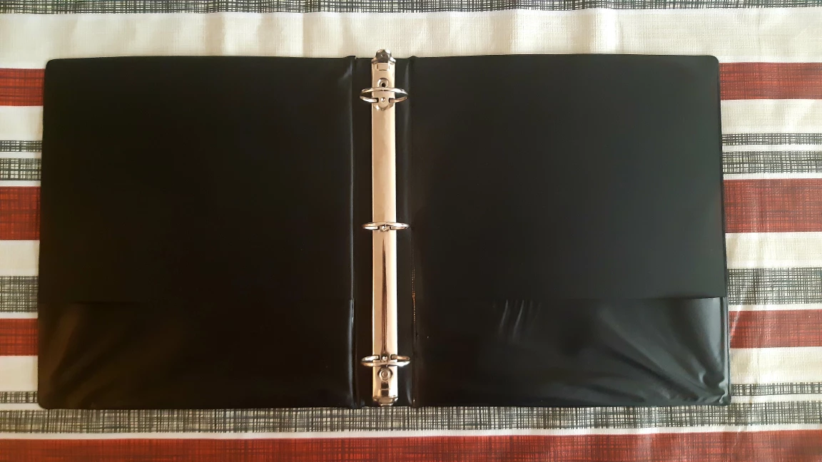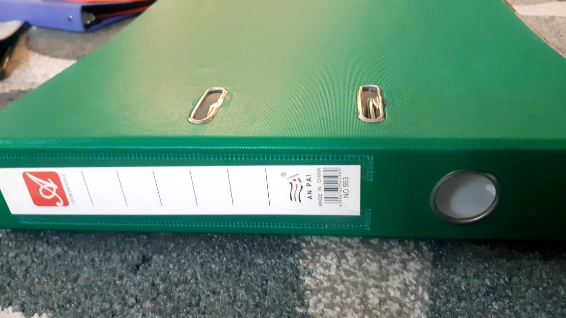 The green one is brand new 1.5" spine 2-ring large size binder. Please see measurements in the pictures. Asking 3$ only. The black one (last 2 pics) is a 1.5" 3-ring binder, in very good gently used condition, asking 2$ only. Pet and smoke free home. Pickup at Markham and Eglinton. Cash only, no Etransfer. I also have some brand new and some used 1-inch 3-ring binders. Please check my other listings.