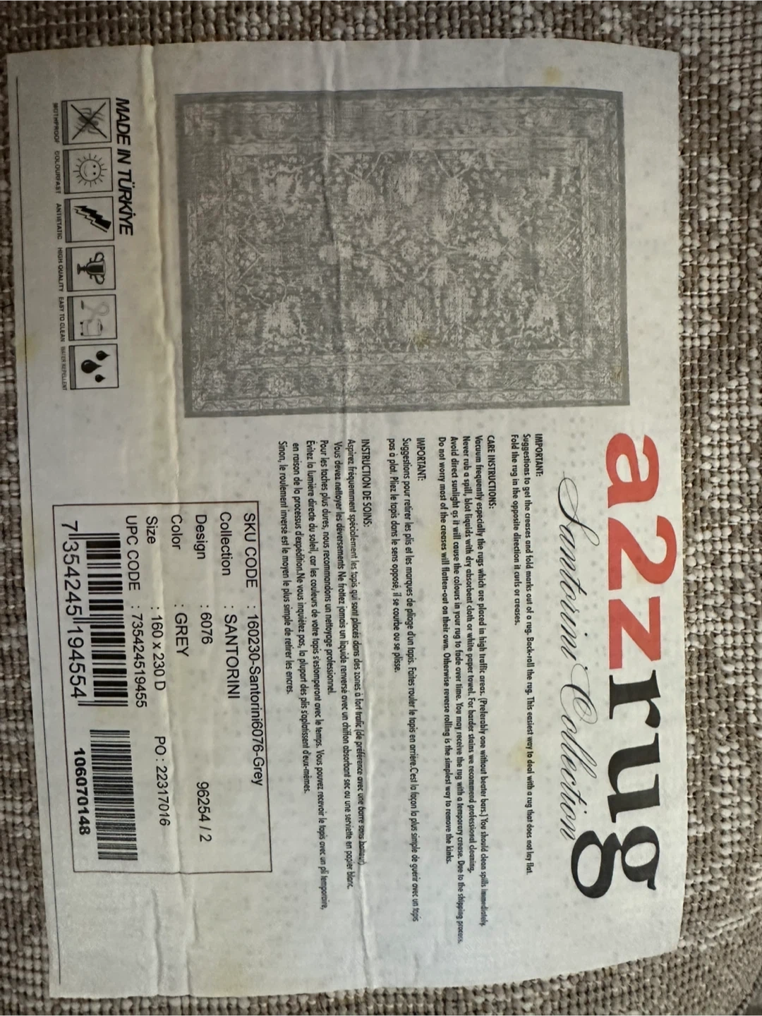 Selling a lovely A2zrug Santorini Collection area rug! It's brand new and would look fantastic in any room. - Brand: Azzrug - Collection: Santorini - Colour: Grey - Size: 160 x 230 cm