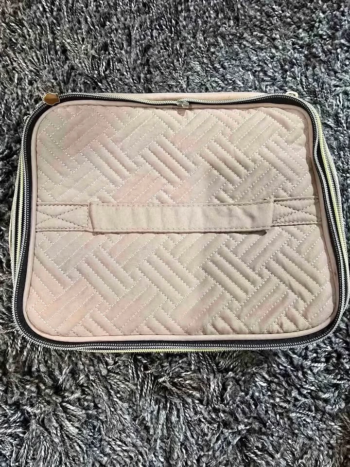 Keep all your essentials neatly packed with this stylish and functional travel accessory organizer! ✅ Quilted finish for an elegant look ✅ Dual zipper closure ✅ Built-in handle for easy carrying ✅ Great for makeup, toiletries, tech accessories, or travel storage 📦 Brand new, never used! Pickup in Mission – message to arrange a time.