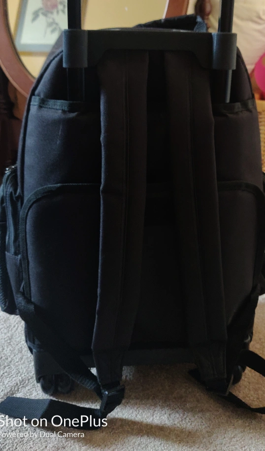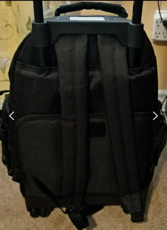 Brand new item. Measures 20"h 15"wide 8.5" deep Double strap at back Front deep pocket/smaller pocket 2 sides pocket with out outer mesh holder