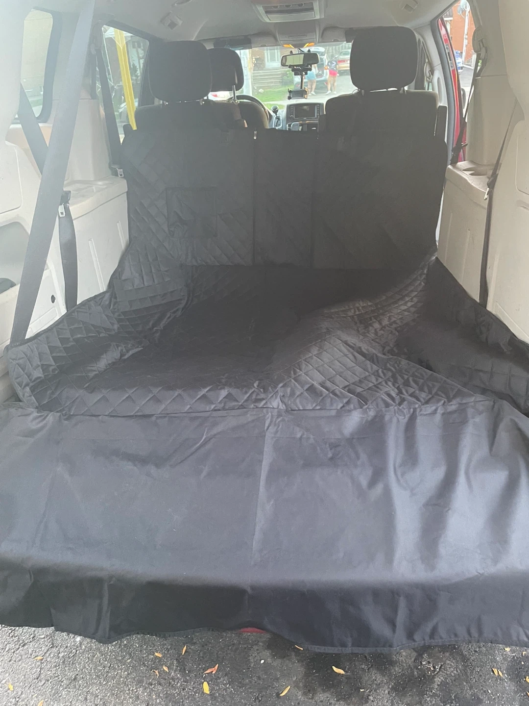 Selling a car trunk cargo liner in black to protect your car's trunk from spills and messes.