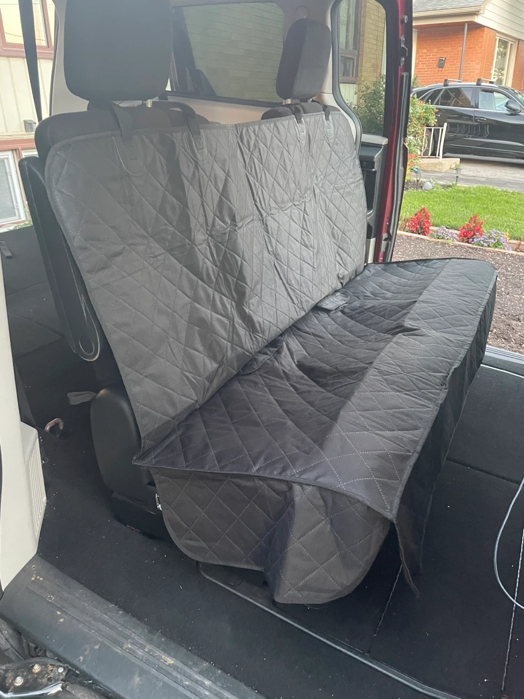 Selling a car back seat cover in black to protect your seats from spills and pet hair! The quilted design adds a touch of style while keeping your car clean. Perfect for families or pet owners
