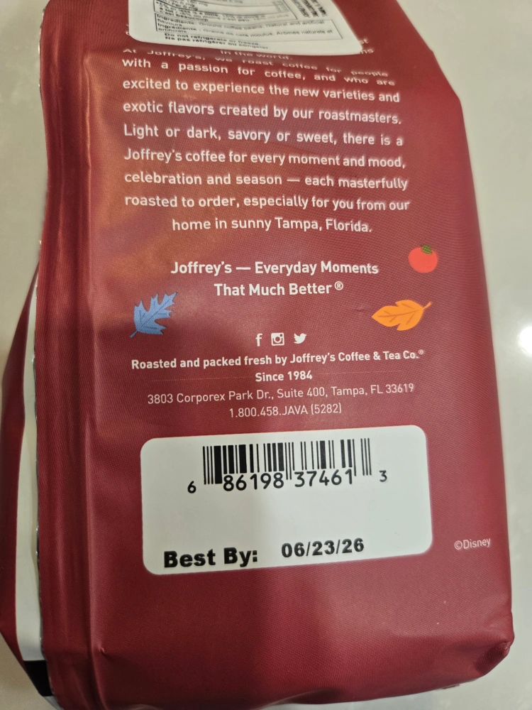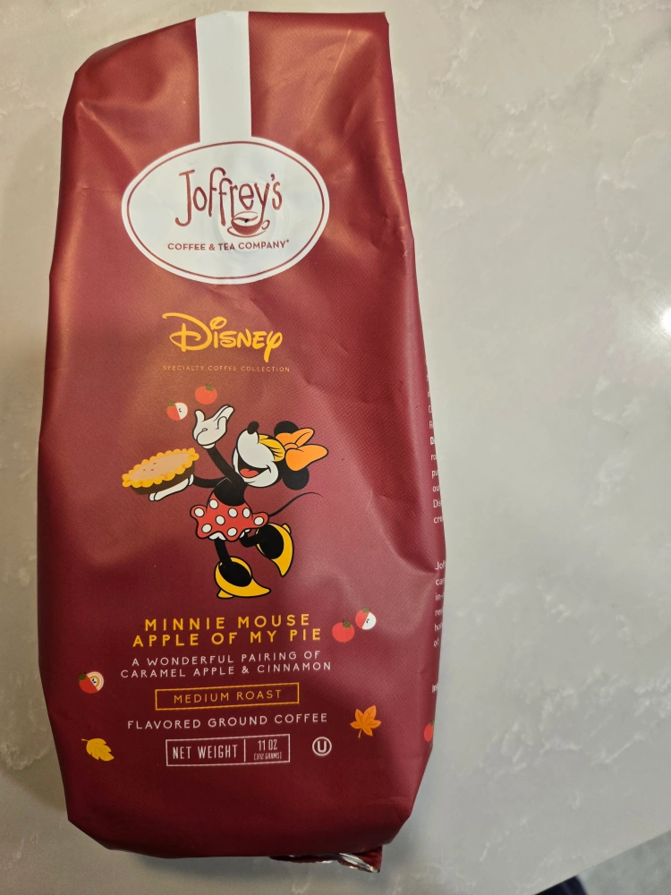 ✨ Bring Disney magic to your mornings! ✨ I’m selling authentic Joffrey’s Coffee – Minnie Mouse “Apple of My Pie”, a medium roast flavored ground coffee with a delightful pairing of caramel apple & cinnamon. This is the official coffee served at Disney World, Disneyland, Disney Cruise Line, and Disney Vacation Club resorts — not sold in regular Canadian stores and rated as hard to find in Canada. Perfect for Disney fans and coffee lovers alike! Details: Brand: Joffrey’s Coffee & Tea Company (Disney Specialty Coffee Collection) Roast: Medium Flavour: Caramel Apple & Cinnamon Size: 11 oz (311 g) Condition: Brand new, sealed Best Before: June 23, 2026 Imported directly from Disney
