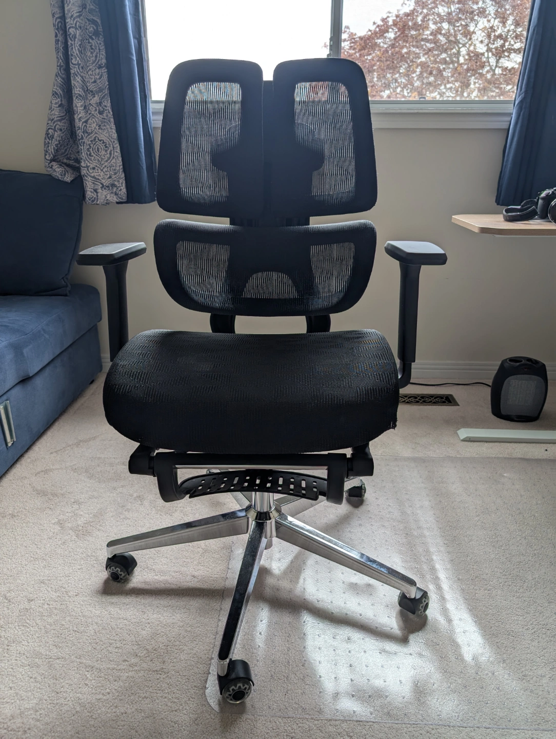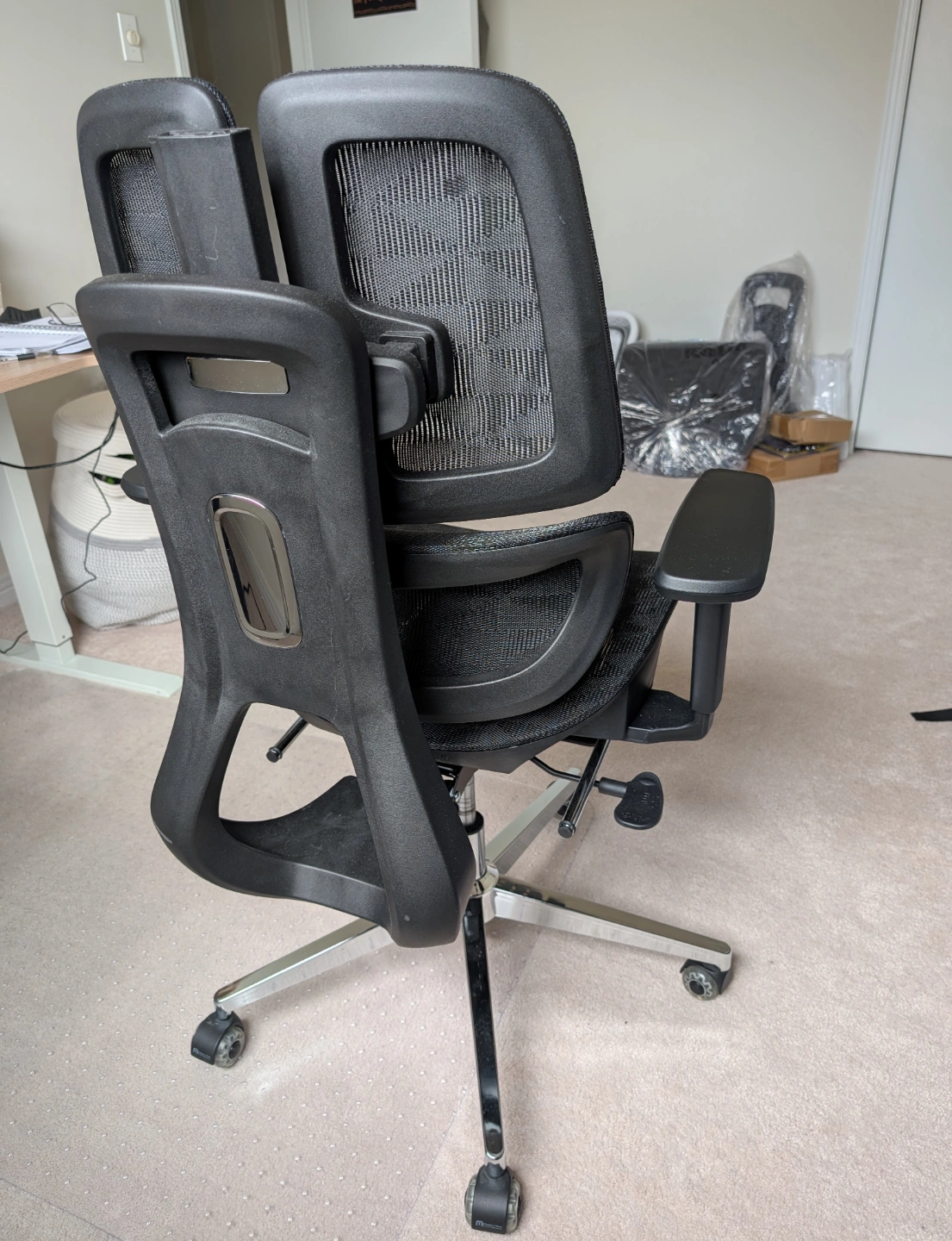 Brand New, Unused. Comfortable and sturdy big office chair. Mesh seat and back for breathability. Adjustable features. Excellent for long hours at a desk. Five-star base with smooth-rolling casters. Black colour.