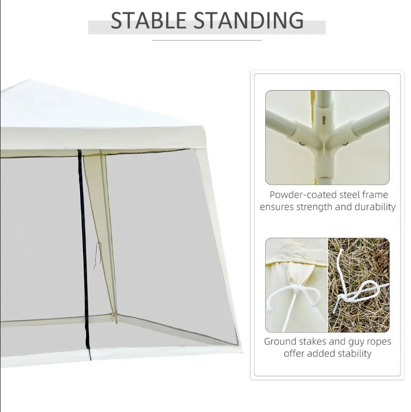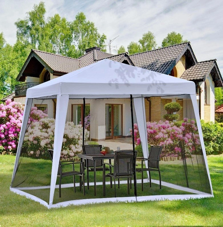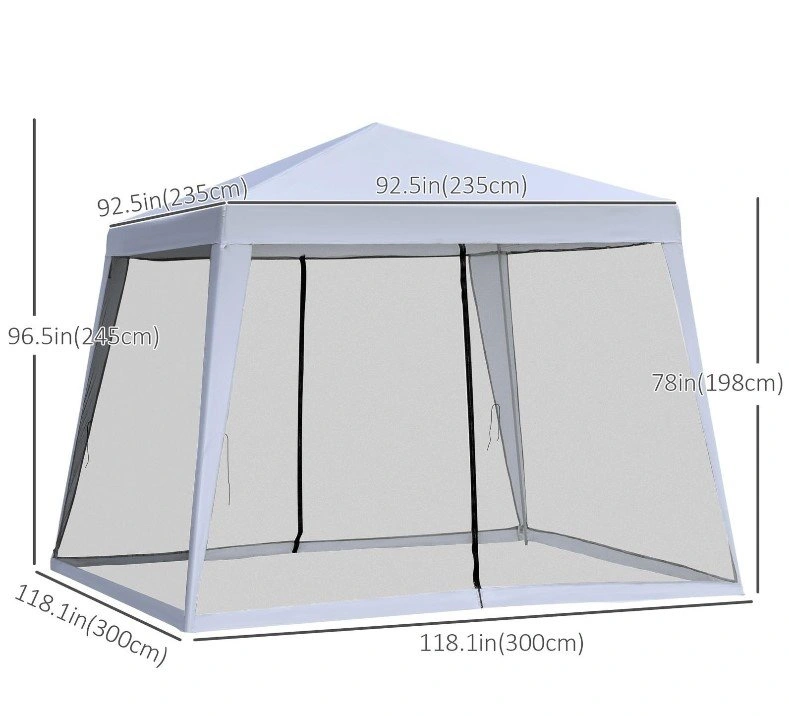 Brand New in Box, Never Used. Outdoor Centerpiece: A modern design with slant legs and a cathedral style roof offers an open-air feel for a variety of outdoor activities, creating a visually appealing outdoor centerpiece ideal for backyard chats or intimate gatherings. Proper Protection: The canopy top is made of 160g/㎡ polyester fabric and blocks harmful UV rays on hot and sunny days for people gathered underneath. Zippered Mesh Curtains: The mesh curtains around the gazebo feature 2 zippered doors to help block annoying elements while still allowing cooling air to flow through. Solid Construction: The construction features a powder-coated steel frame that ensures strength and durability. In addition, 8 ground stakes and 4 guy ropes are included to offer added stability. Overall Dimensions: 10'L x 10'W x 8'H Eaves Height: 6.5', Easy assembly required. Item Weight: 13 lbs Pick Up at Lawrence & Keele