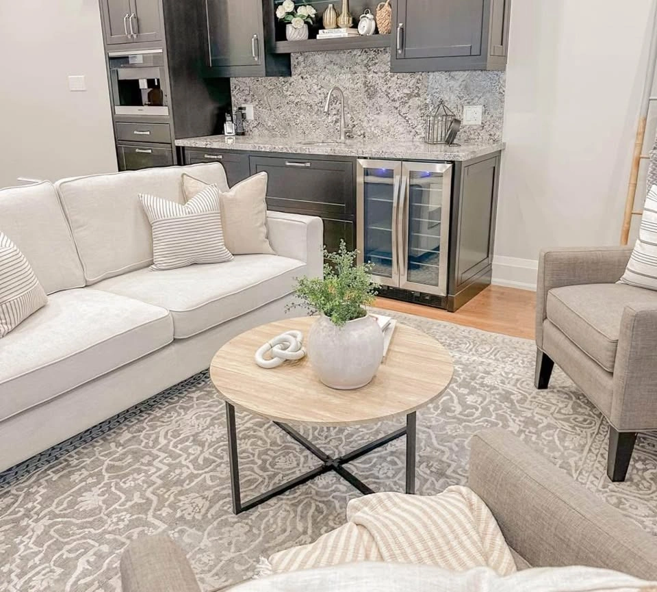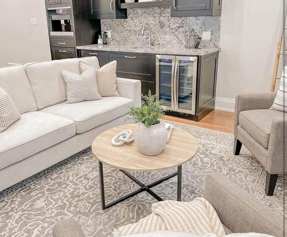 Beige Sectional Sofa with Ottoman