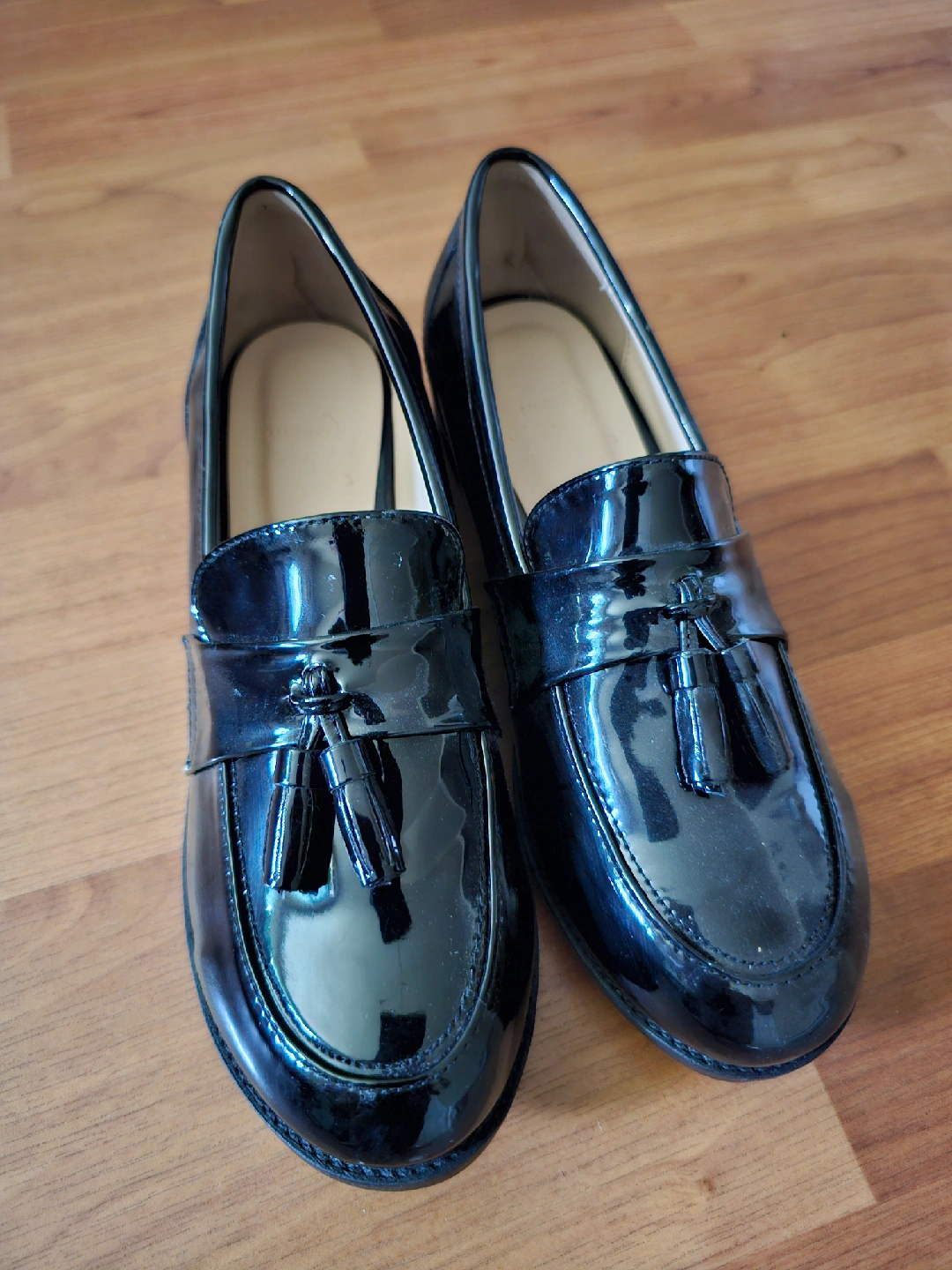 Selling a pair of black patent leather loafers! They are in perfect new condition purchased in Korea but never worn. The size is 235 (Korean sizing), about size 6 US. Made in Korea.