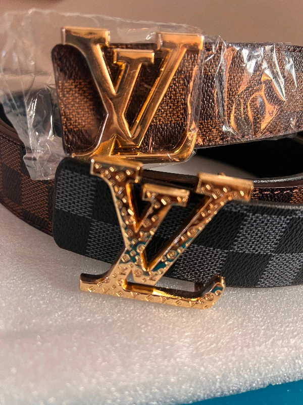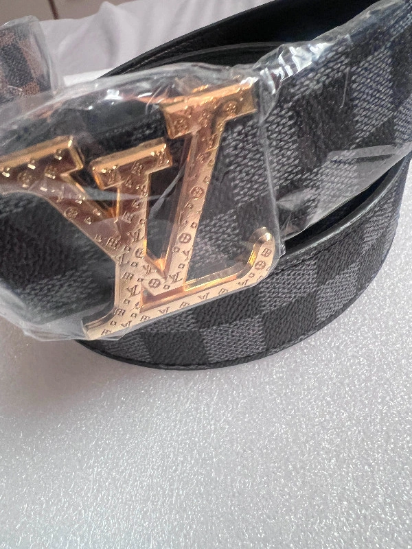 For sale brand new leather belt H design Gold buckle. Black leather belts are sure to last for a long time, as they are made from premium high quality PU leather. Stylish buckle lends them unique charm. Finish off your dress look. ++Product Features: • Modern look, brushed Gold buckle with logo • High quality PU leather • Gold buckle, belt is 1.5 inches wide • Length: 42.5” • It has pre-punched holes for perfect adjustment. Fit waist size from 30-39.