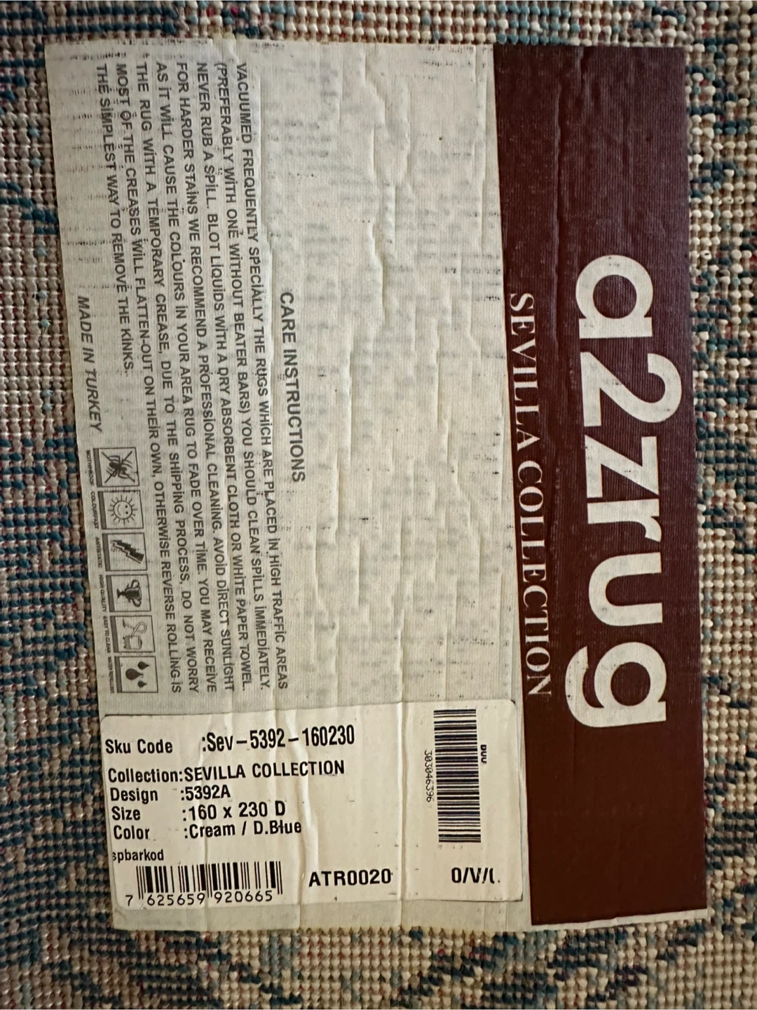 I'm selling a Sevilla Collection area rug in a cream and blue colour palette. The size is 160 x 230 D. It's in great shape and would look lovely in any room!