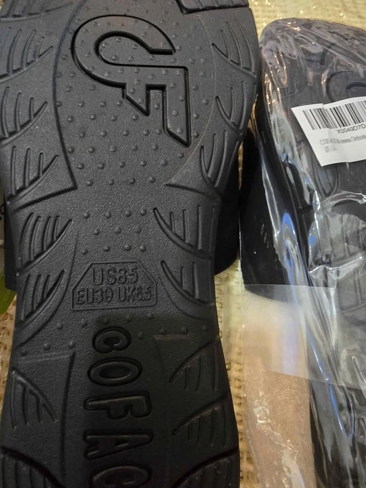 COFACE Women’s Orthotic Slide Sandals. Super comfy black double-strap design with adjustable buckles, perfect for casual wear or around the house. Lightweight, supportive, and comes with original tag and packaging. Pickup in Mission. Let me know if you're interested!