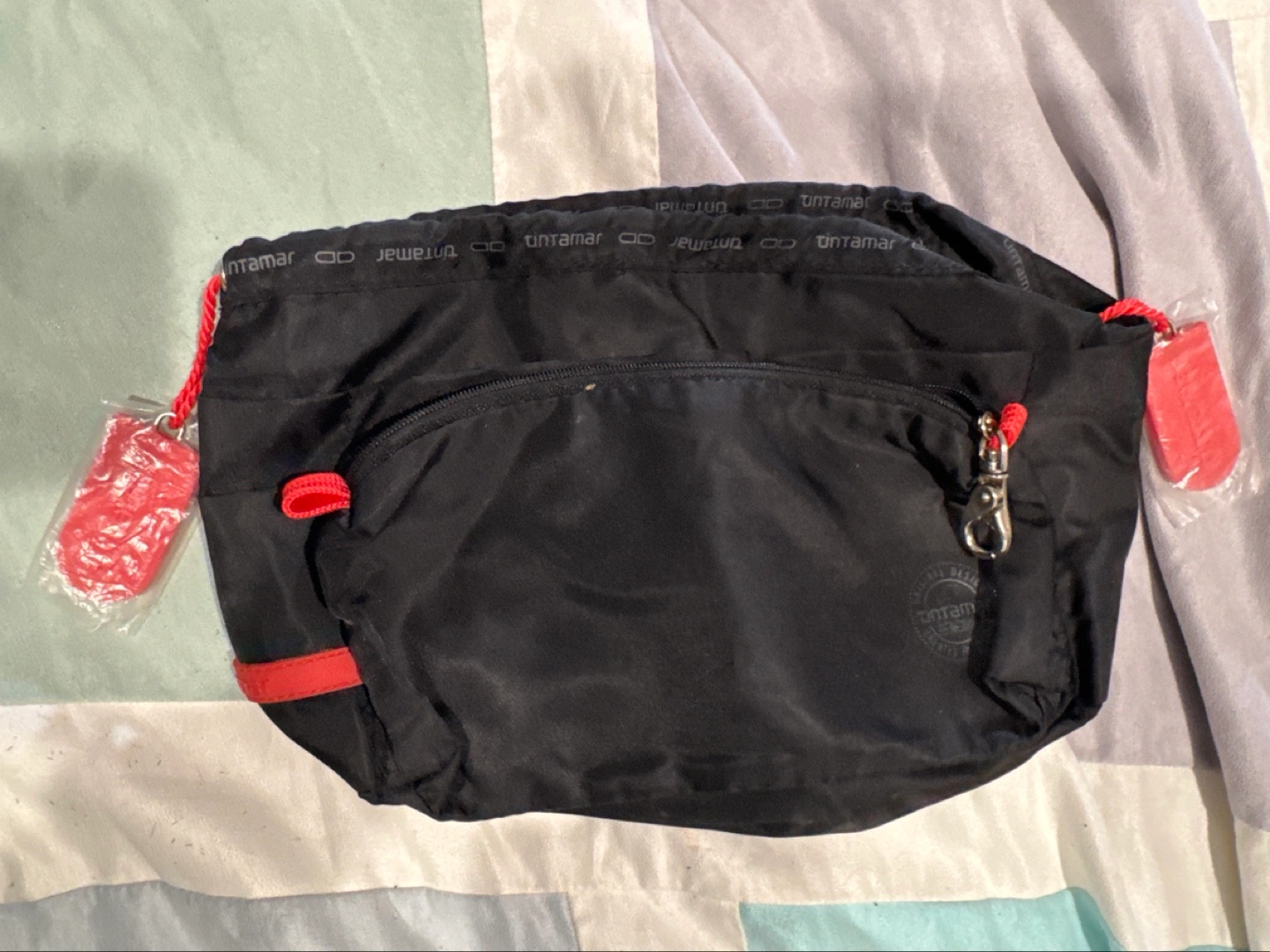 This is a black drawstring bag from Untamar. It's BRAND NEW and ready for a new home. Perfect for carrying your essentials! Super high quality material.