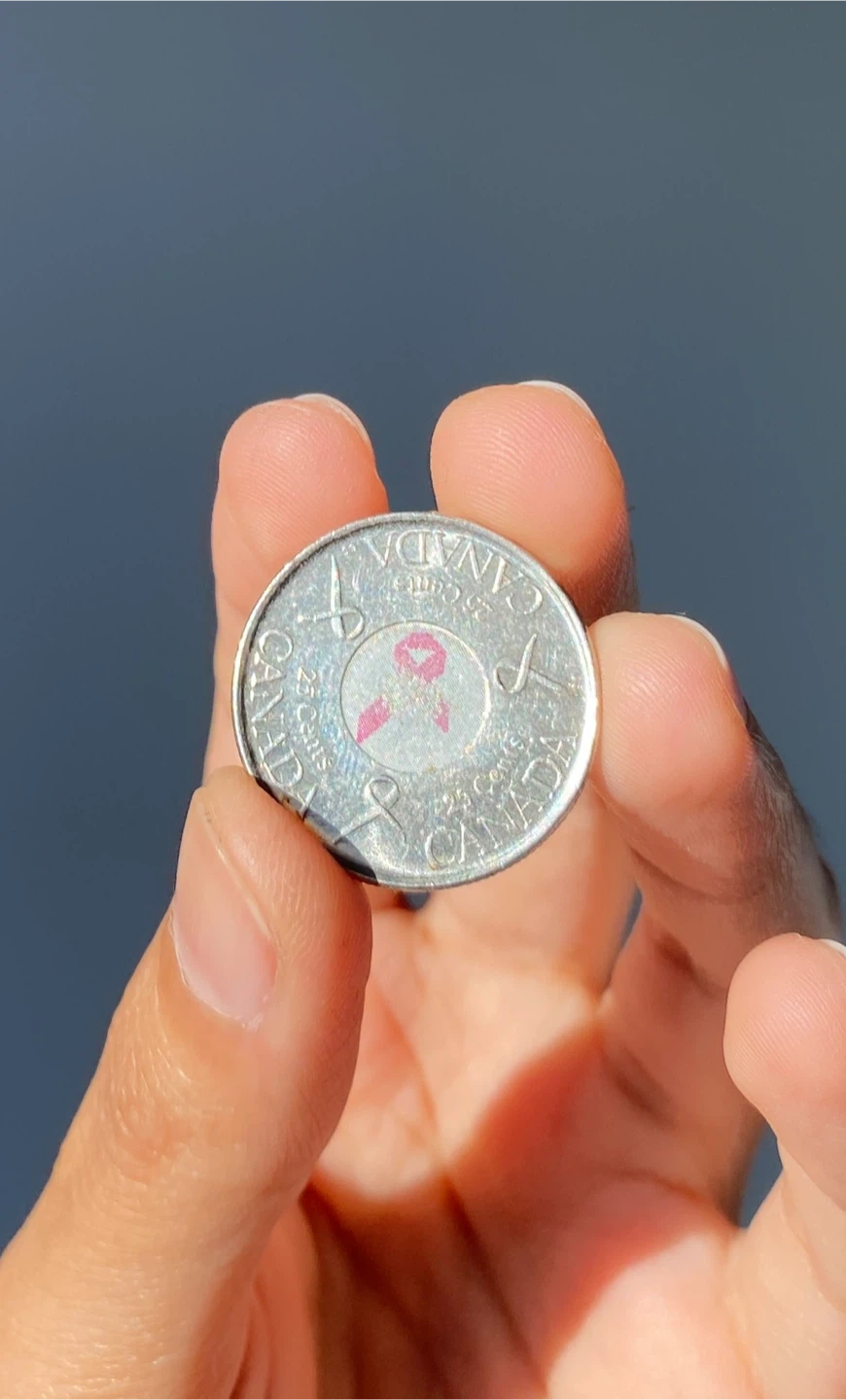 Breast cancer awareness cent coin refers to the 2006 Canadian 25-cent quarter featuring a pink ribbon, the world's second colored circulation coin, to support breast cancer awareness and research. The coin was designed by Cosme Saffioti and is surrounded by three ribbons with the value "25 cents" and "CANADA" written on them. ❤️ Check out my other listings for great deals!