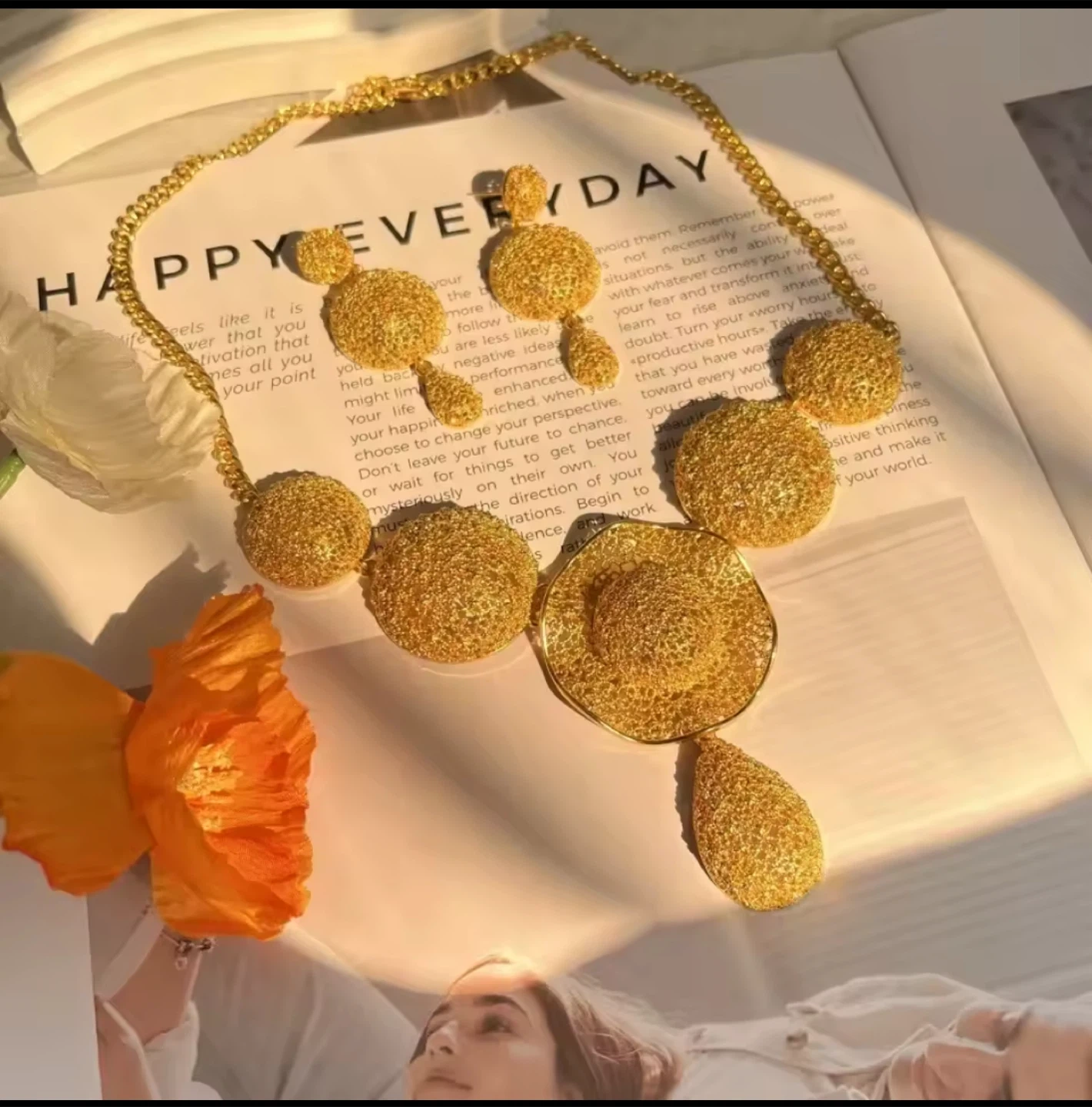 Bridal Indian Necklace Sets 24K Gold Plated Long Pendant For Women Nigeria African Dubai Wedding Earring Jewelry Set Party Gift