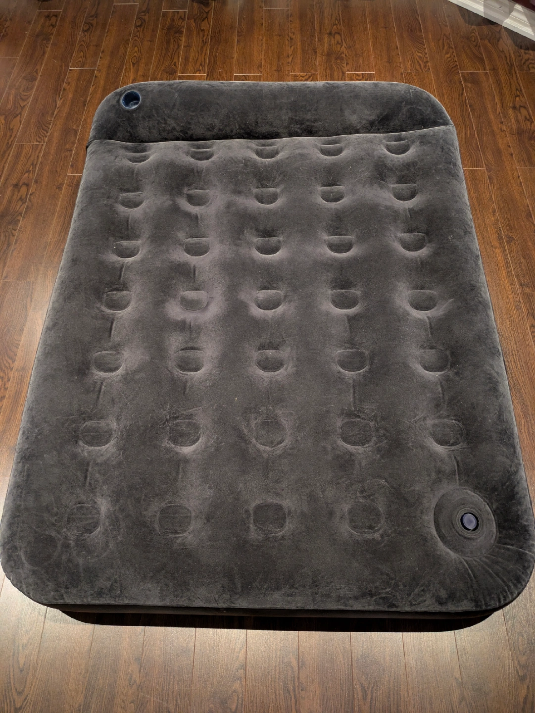 Selling a Broadstone double air mattress in great condition! It's perfect for guests or camping trips. It's easy to inflate and deflate, and it's super comfy for a good night's sleep. Ready for a new home! Features: - inflation with built-in foot bump. - built in cupholder - raised pillow top - size: 72" x 53" x 8" tested: no leakage