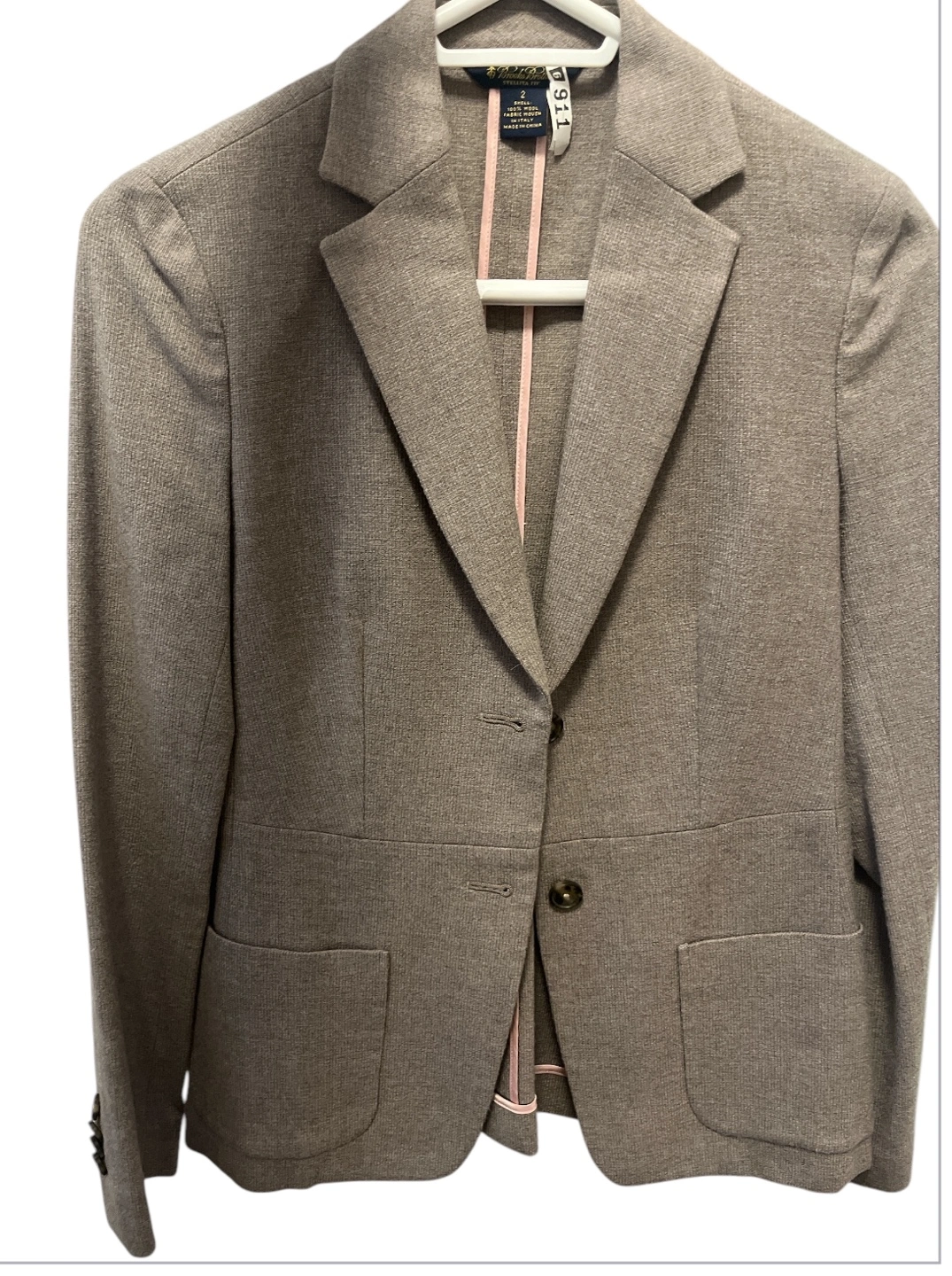 blazer with two pockets and a single button closure. Made of 100% wool.