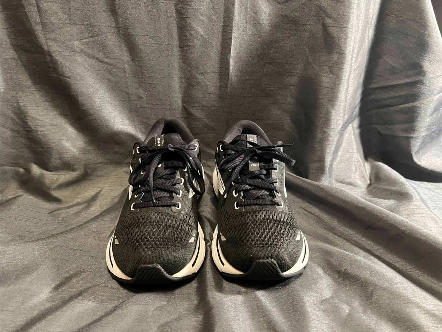 Selling a pair of Brooks Ghost 15 running shoes in black! They're in great shape and ready for a new home. Perfect for running or everyday wear, these shoes offer a comfortable and supportive fit.