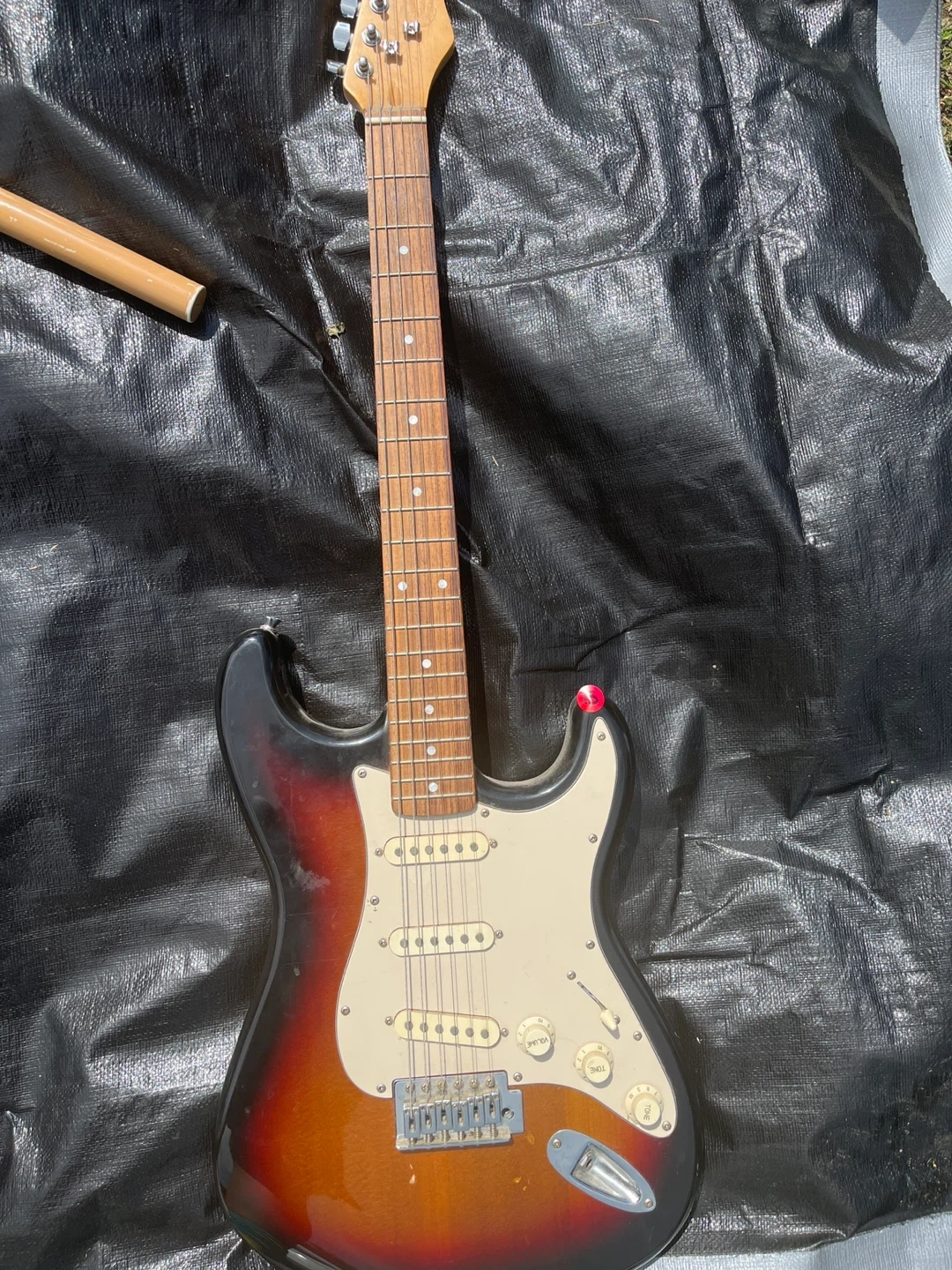 Brown electric guitar, has small but not very noticeable chips in the body. Good condition aside from the chips Bought: $200 Selling: $75 Years owned: about 14