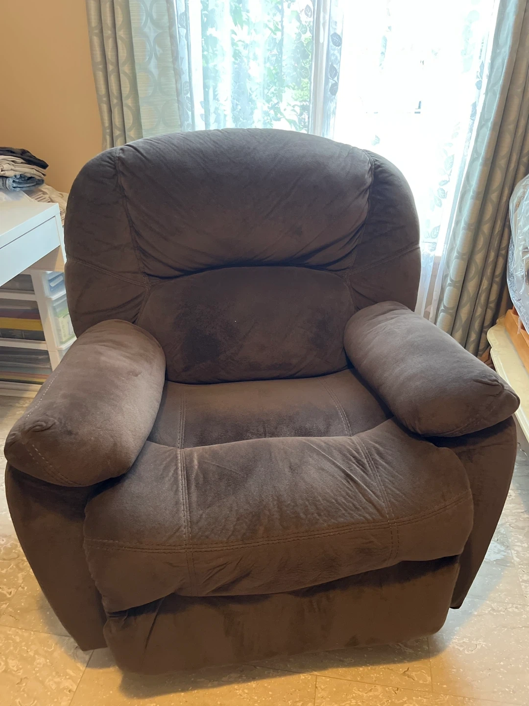 Selling a comfy brown recliner chair. It's in good condition and ready for a new home! Perfect for relaxing after a long day The electric reclining does not work. Super comfortable Need gone ASAP. Bradford pick up CASH ONLY please.