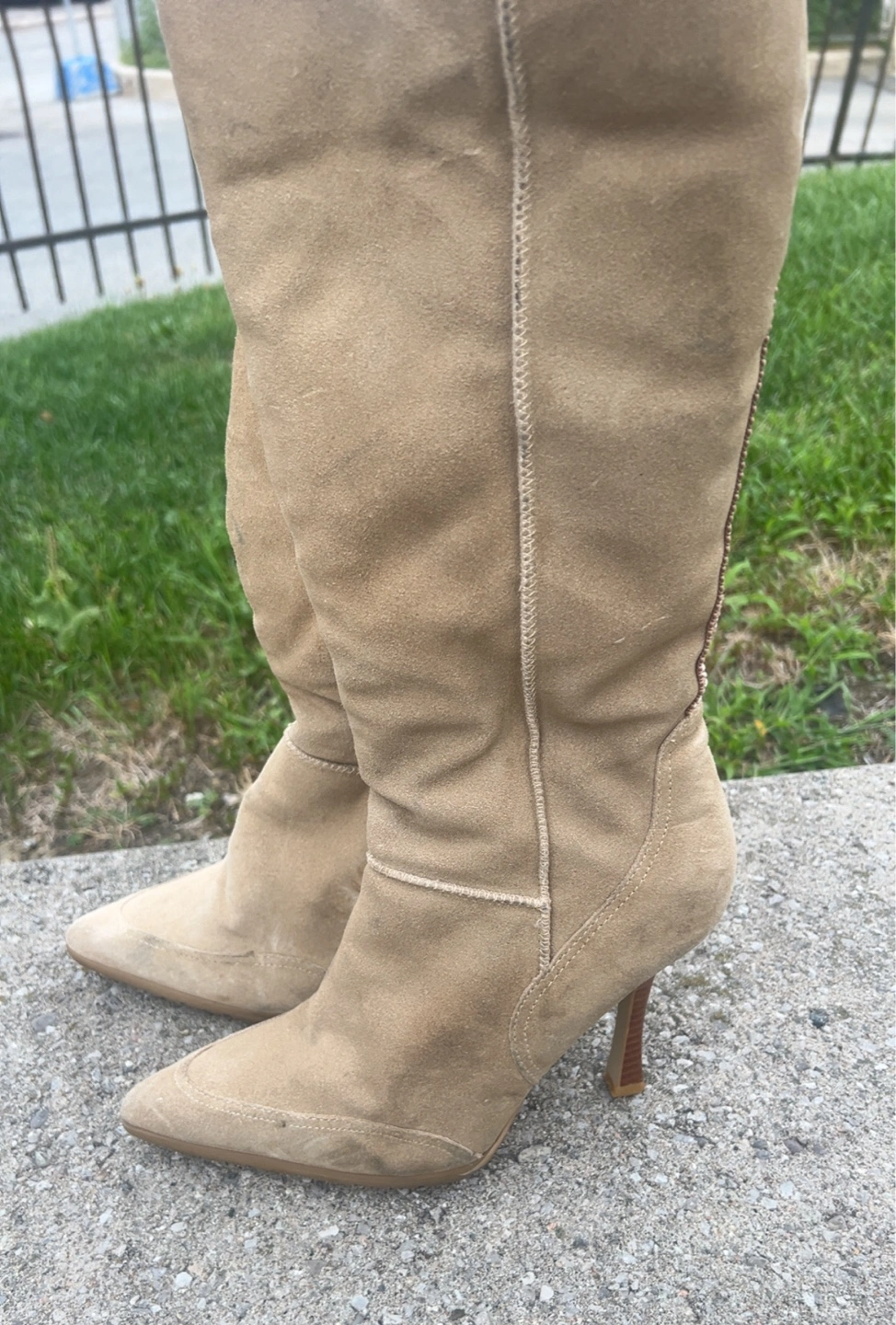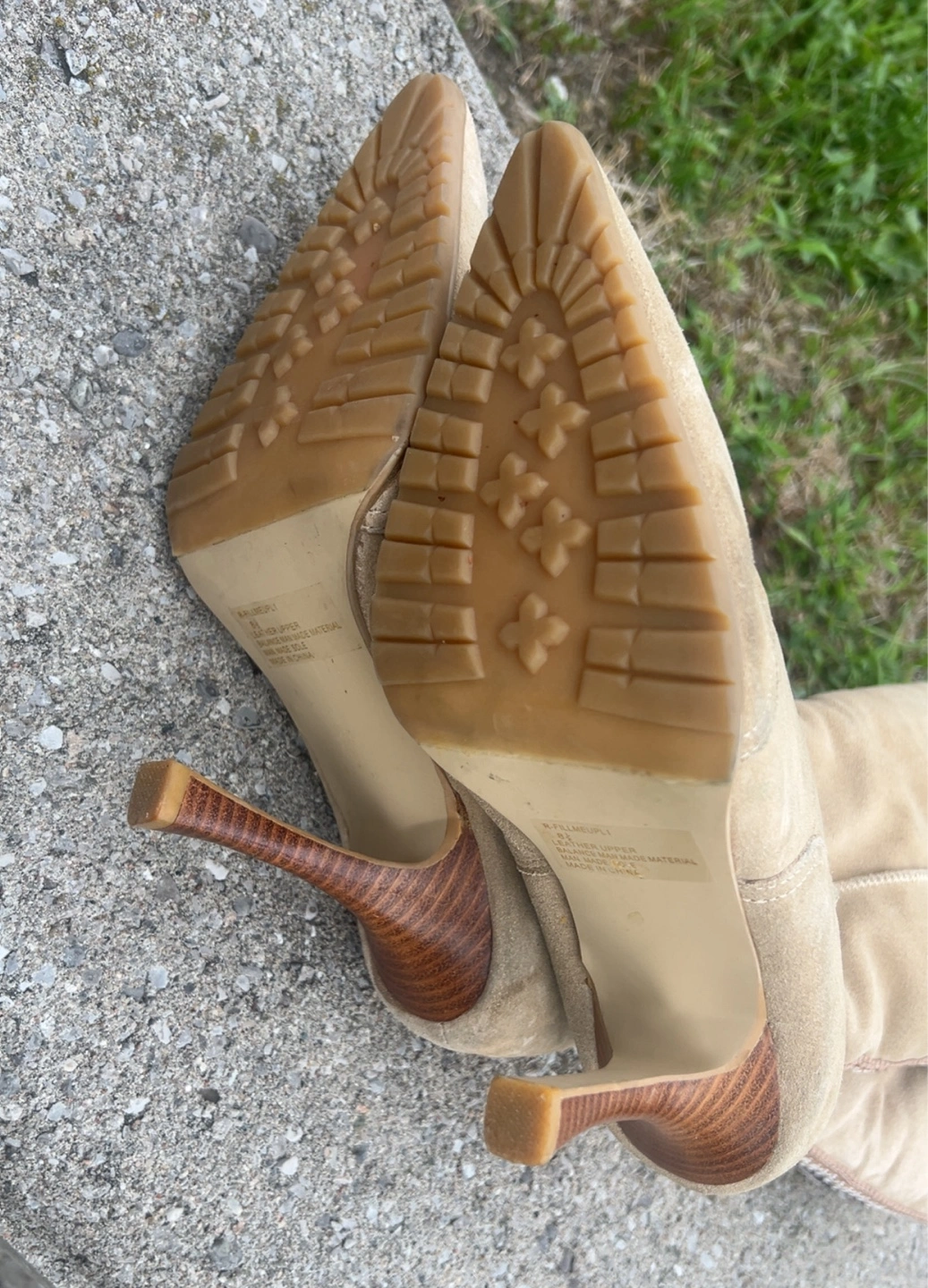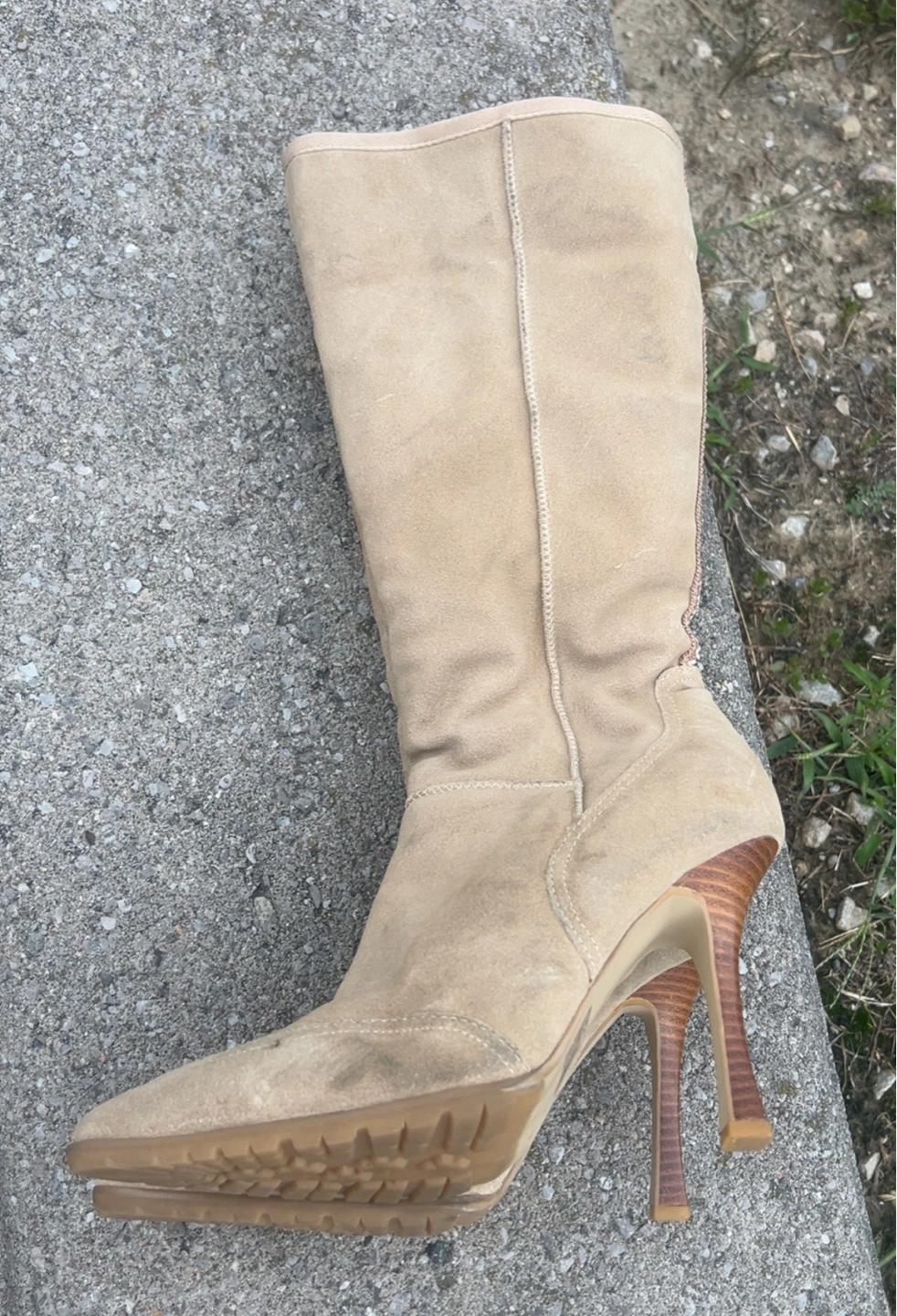 Selling a pair of brown suede heeled boots, wonderful touch to fashion and very lovely! If you are interested, message me right away! If you know any info✔️