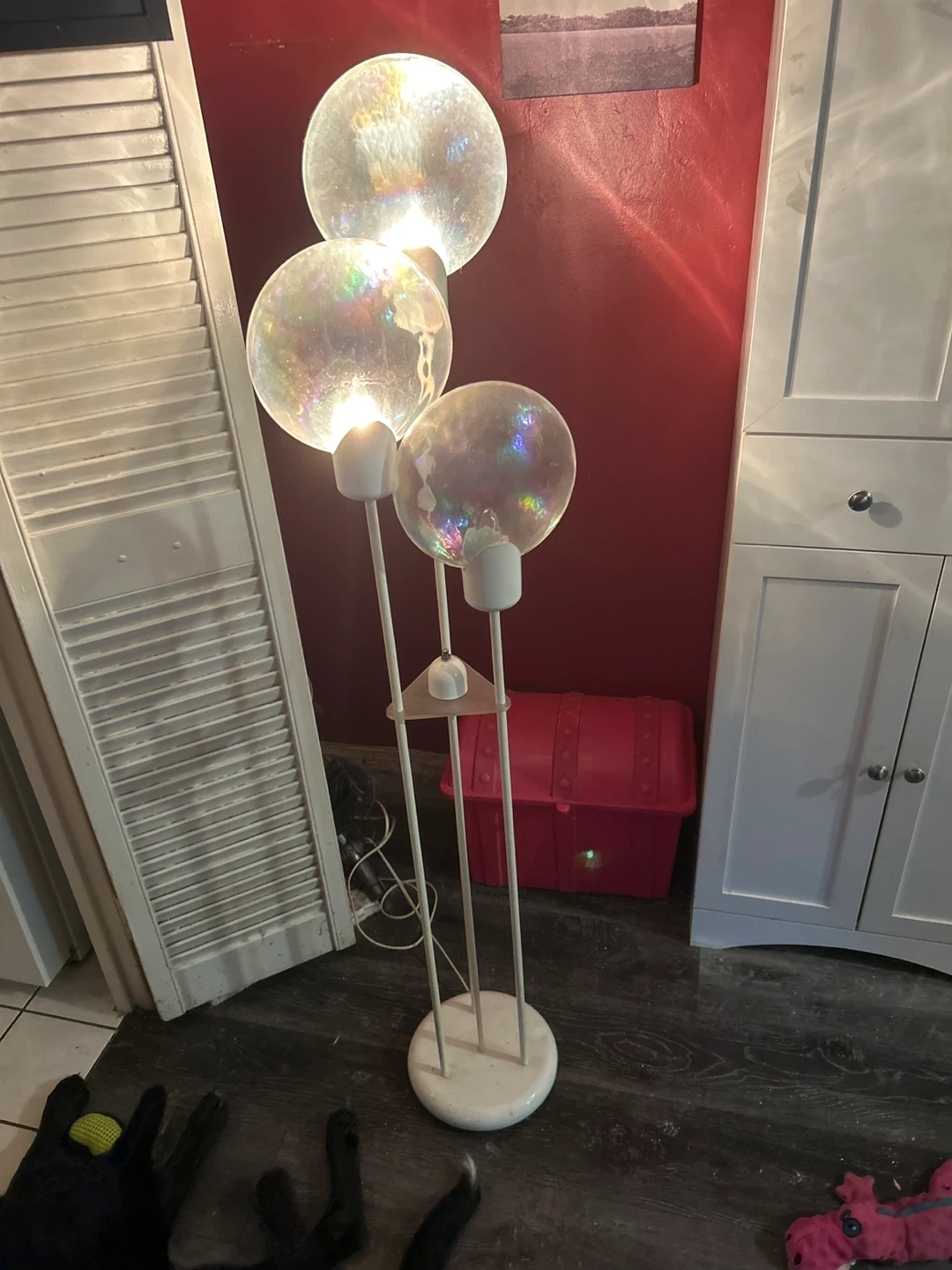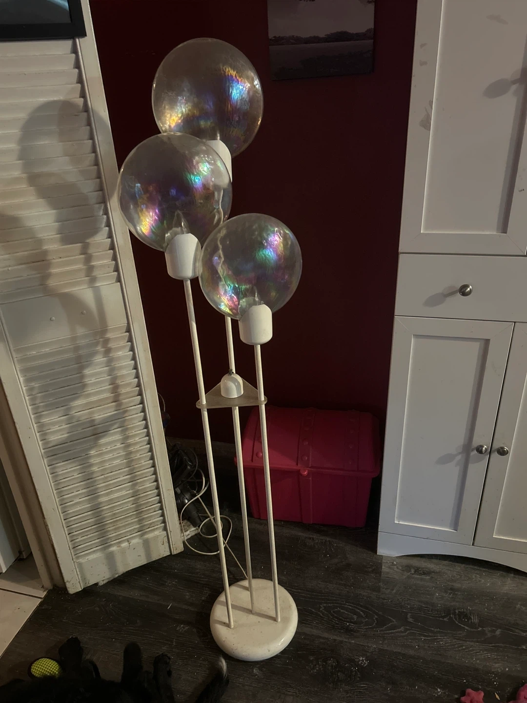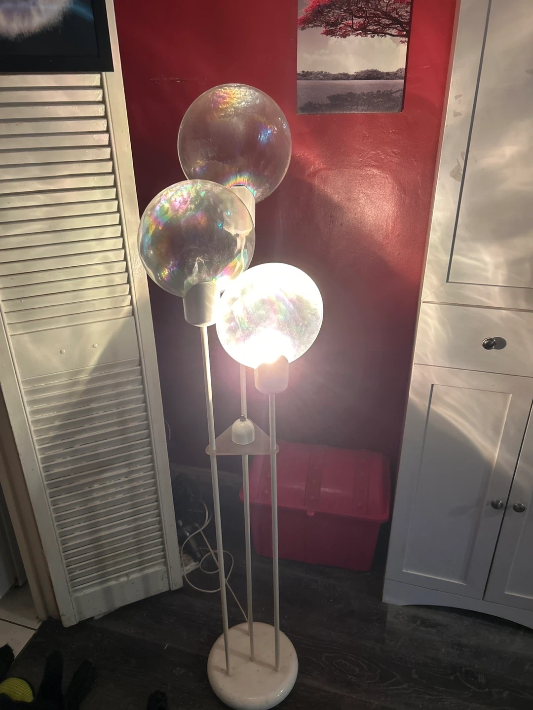 Here's a really cool bubble floor lamp! It has three lights that are like bubbles, and it gives off a nice, soft glow. It would look great in any room!