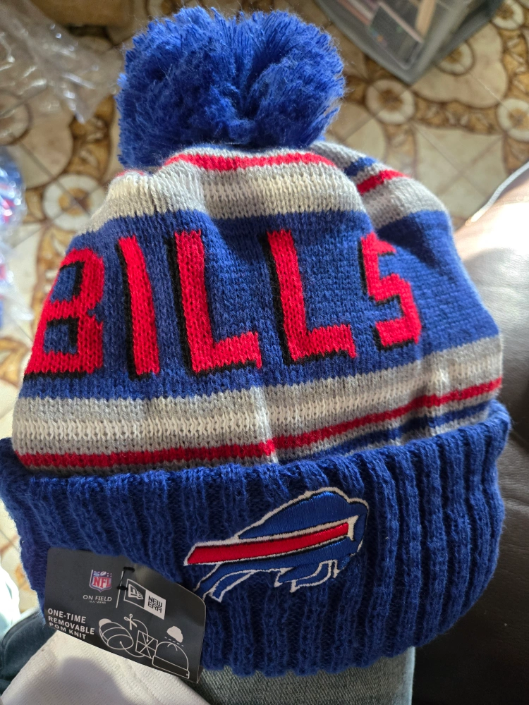 Selling a brand new Buffalo Bills toque! It's a New Era pom knit hat, perfect for showing your team spirit. The colours are blue, red, and grey. It also has the Bills logo. Never worn and ready for a new home!