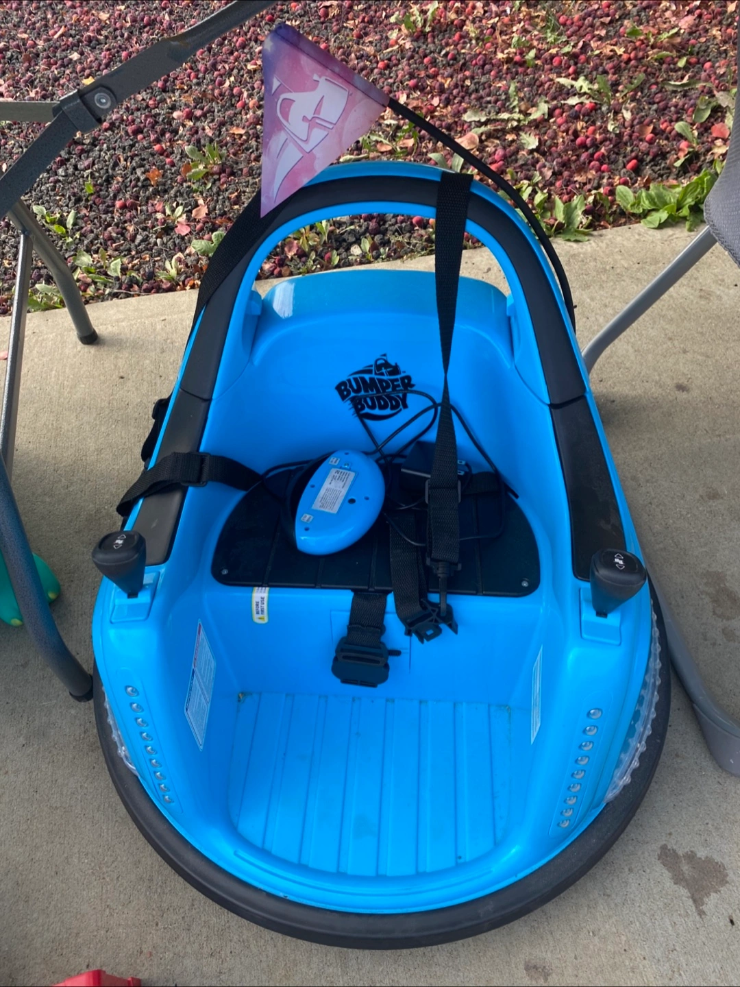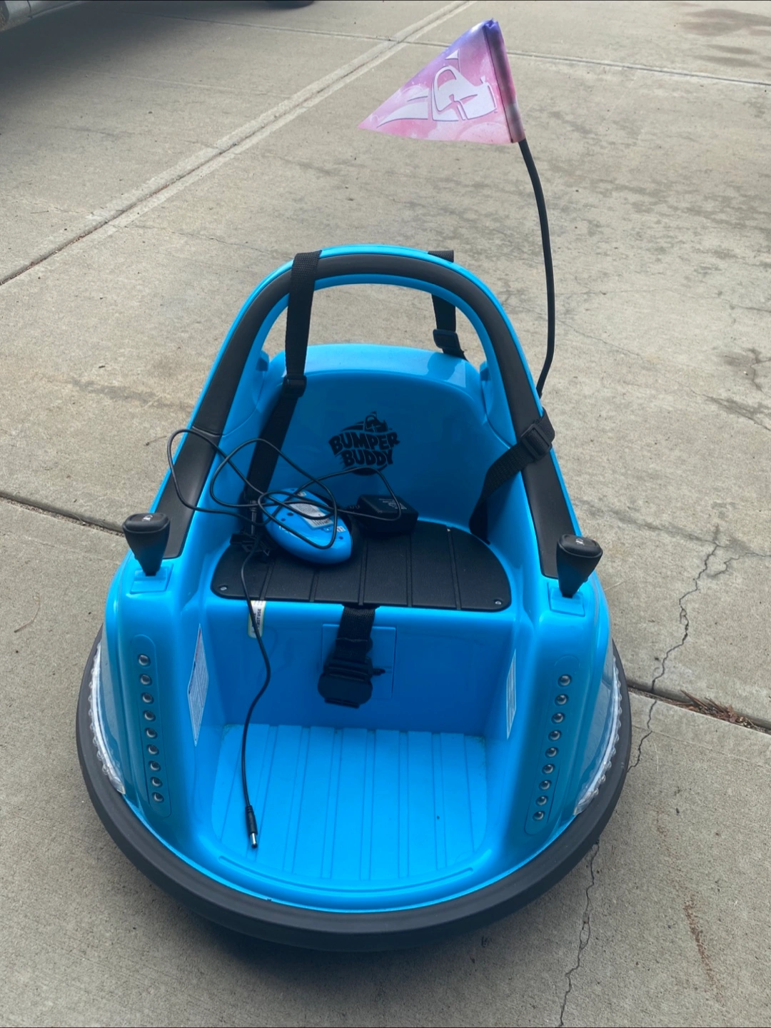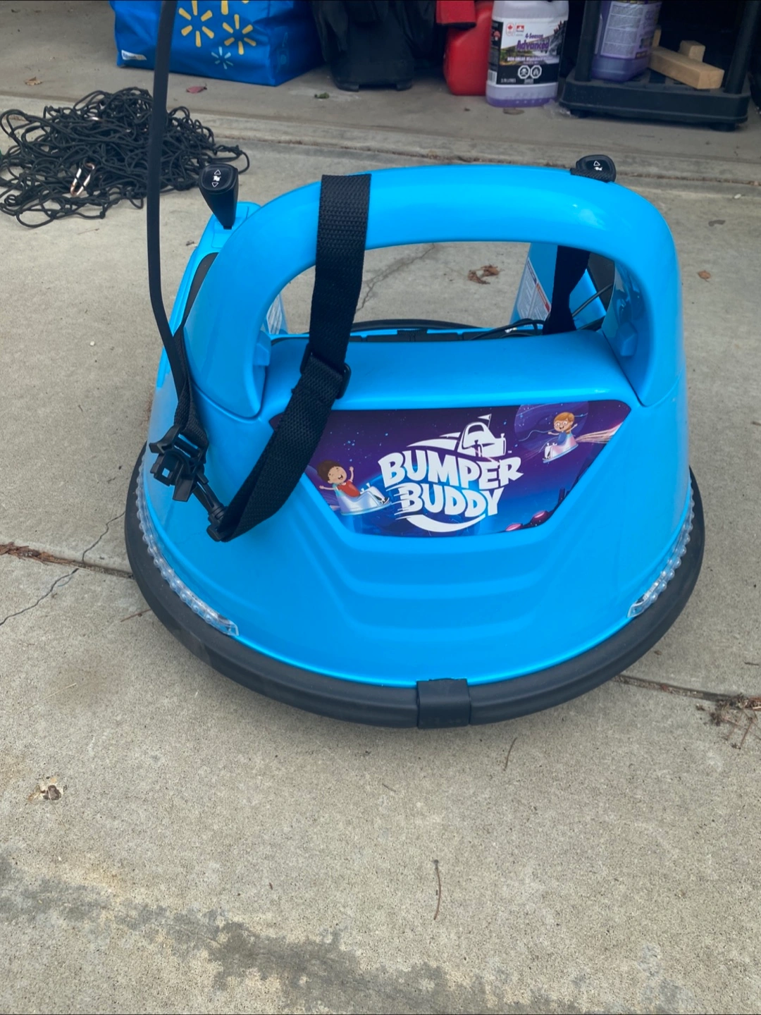 Selling a Bumper Buddy bumper car in blue! It's in great shape and ready for some fun. It features a seat with safety straps and a control panel. Come with remote control as well