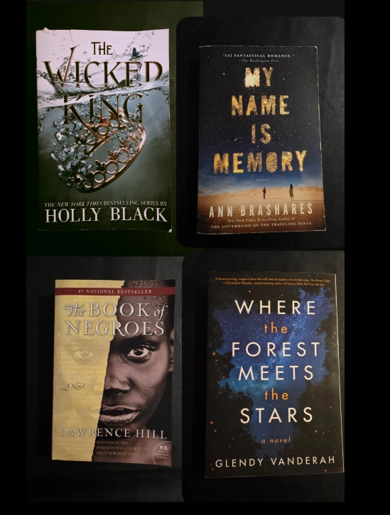 Selling a set of books including: - The Book of Negroes by Lawrence Hill - The Wicked King by Holly Black - My Name is Memory by Ann Brashares - Where the Forest Meets the Stars by Glendy Vanderah