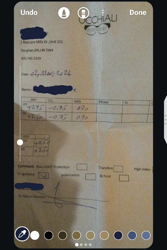Women's eyeglasses. Black frames. Brown temples. Comes with a Burberry case. Made in Italy. these are of highest quality "essilor" ,LENS. looking through these are literally like clear as day. prescription is in pictures. purchased for over $650 at Occhiali eyewear in Vaughan mills. pick up Weston rd@401 may accommodate at various locations within distance only.