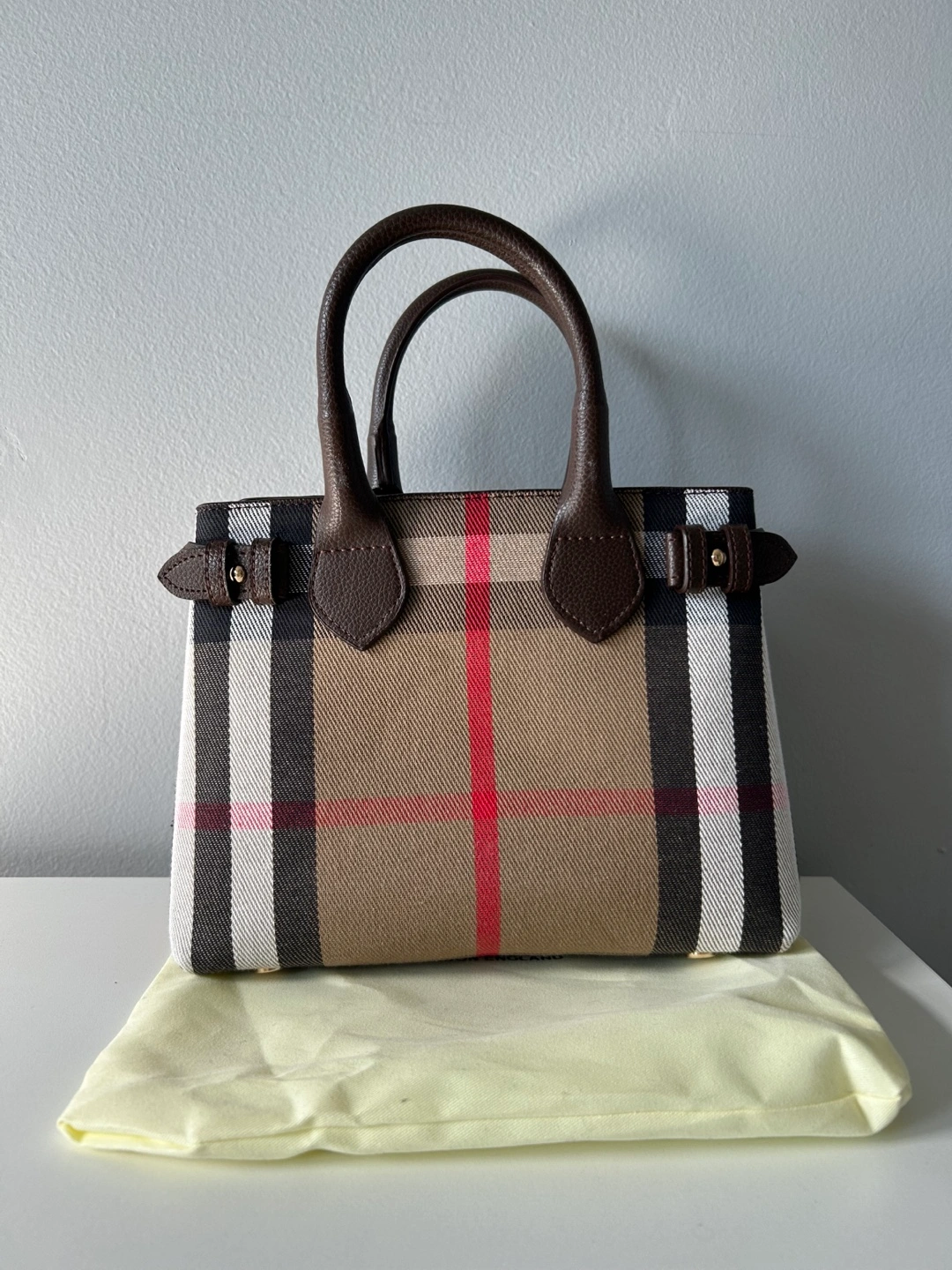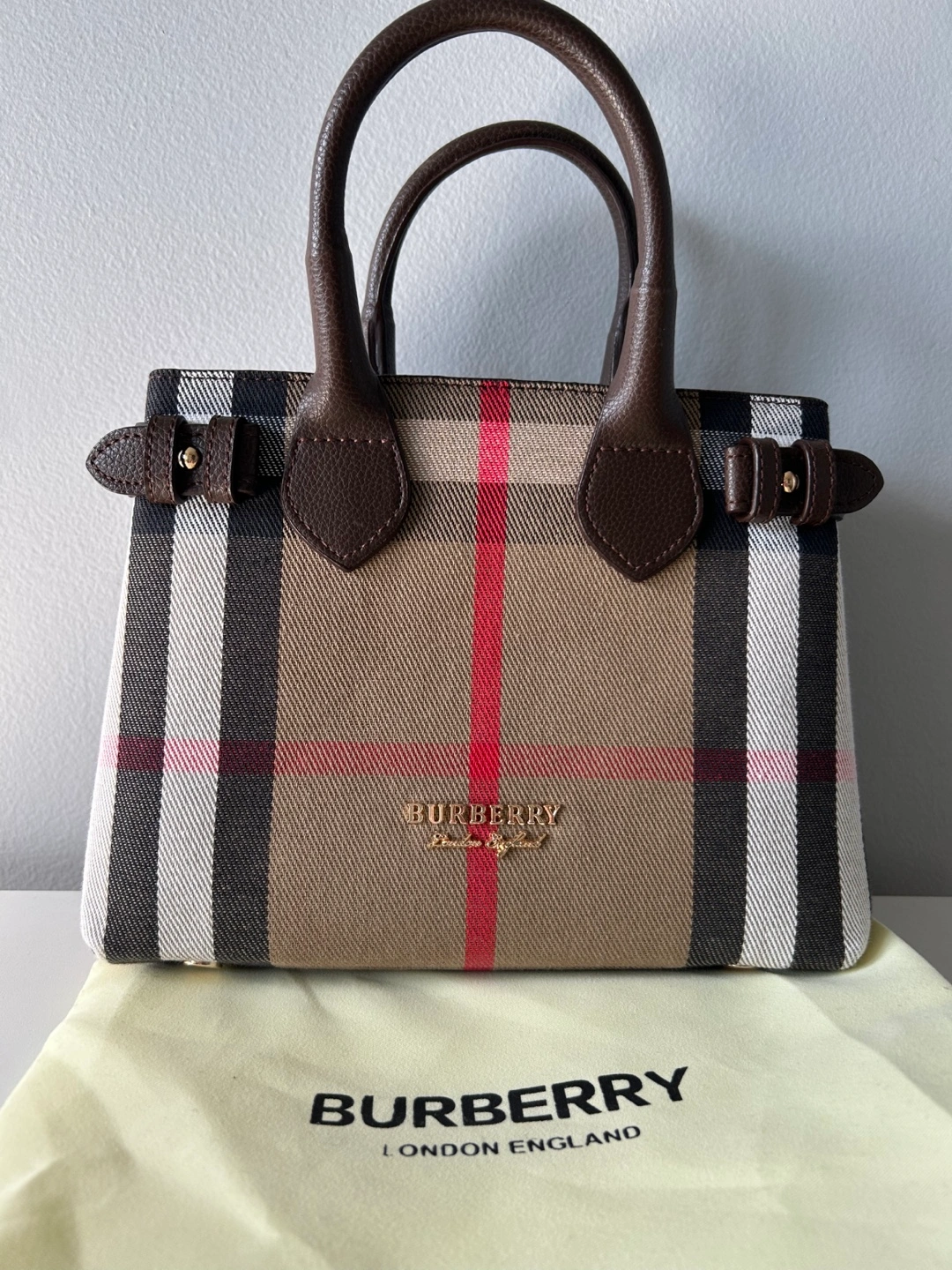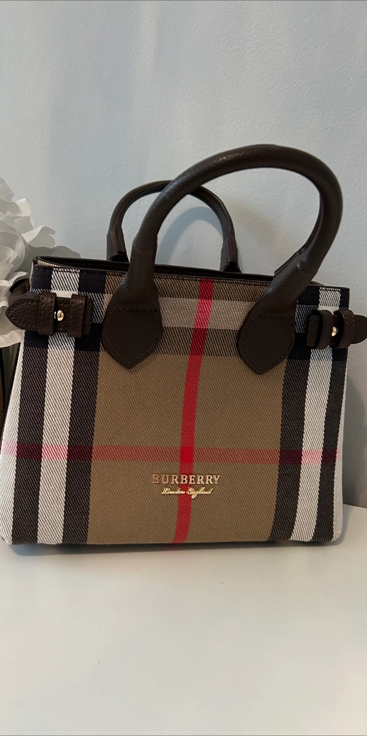 Selling a cute Burberry Banner bag! It features the classic Burberry check pattern in brown, red, and white. The bag has brown leather handles and trim. It's a stylish and timeless piece! Comes with a dust bag. Only used twice. Pet free, smoke free, very clean home.