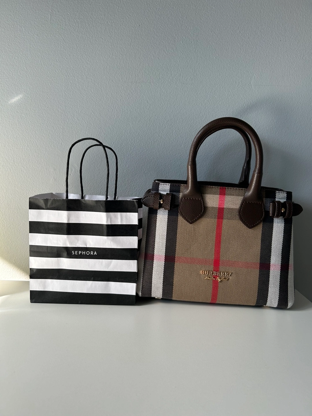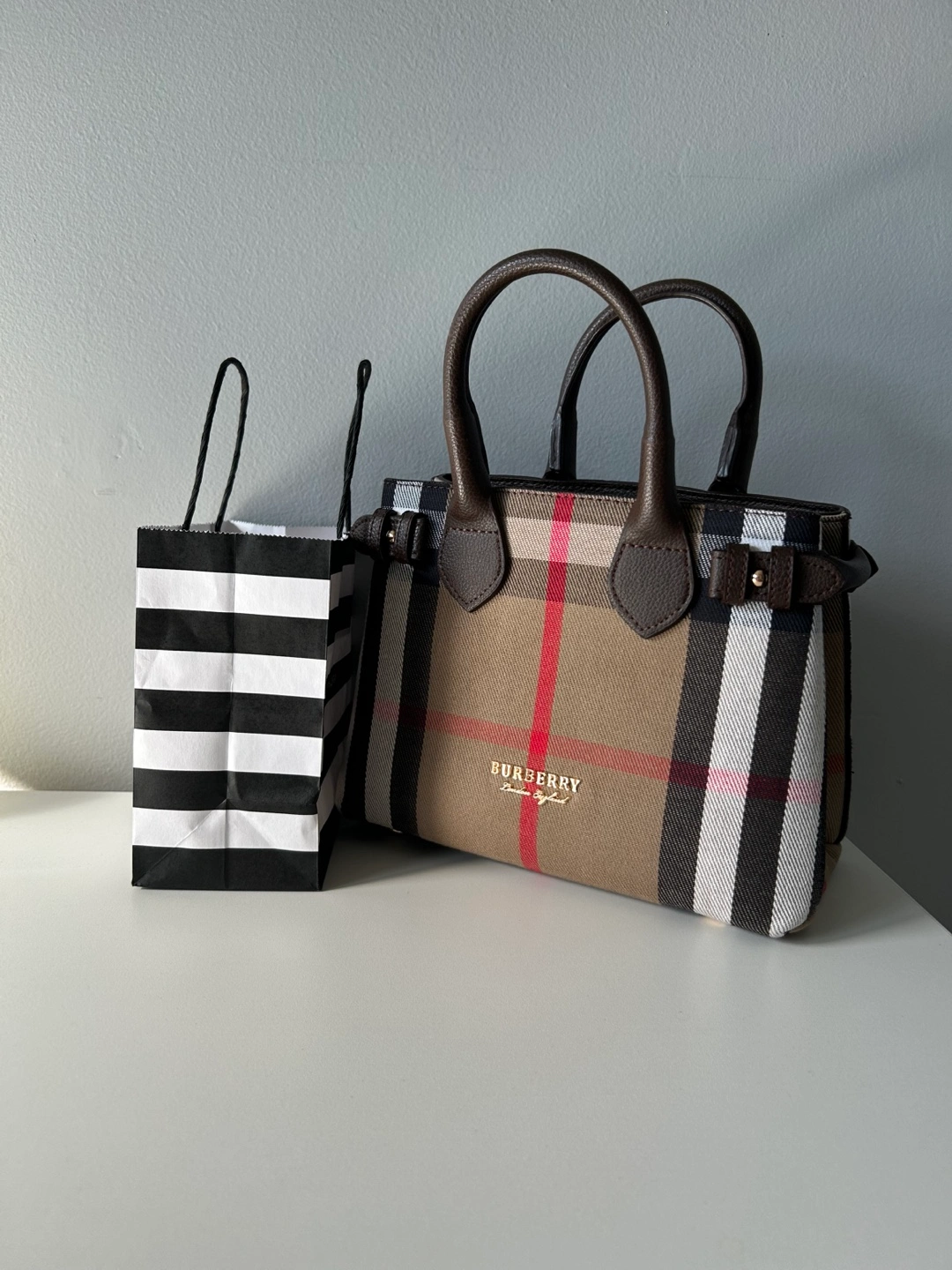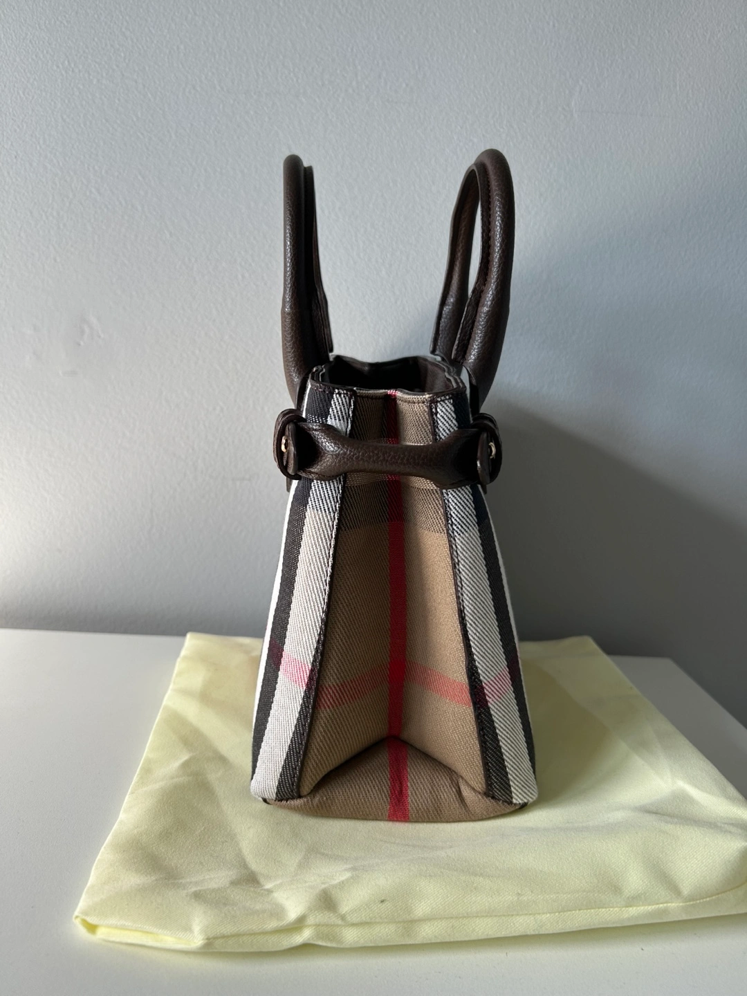 Selling a cute Burberry Banner bag! It features the classic Burberry check pattern in brown, red, and white. The bag has brown leather handles and trim. It's a stylish and timeless piece! Comes with a dust bag. Only used twice. Pet free, smoke free, very clean home.