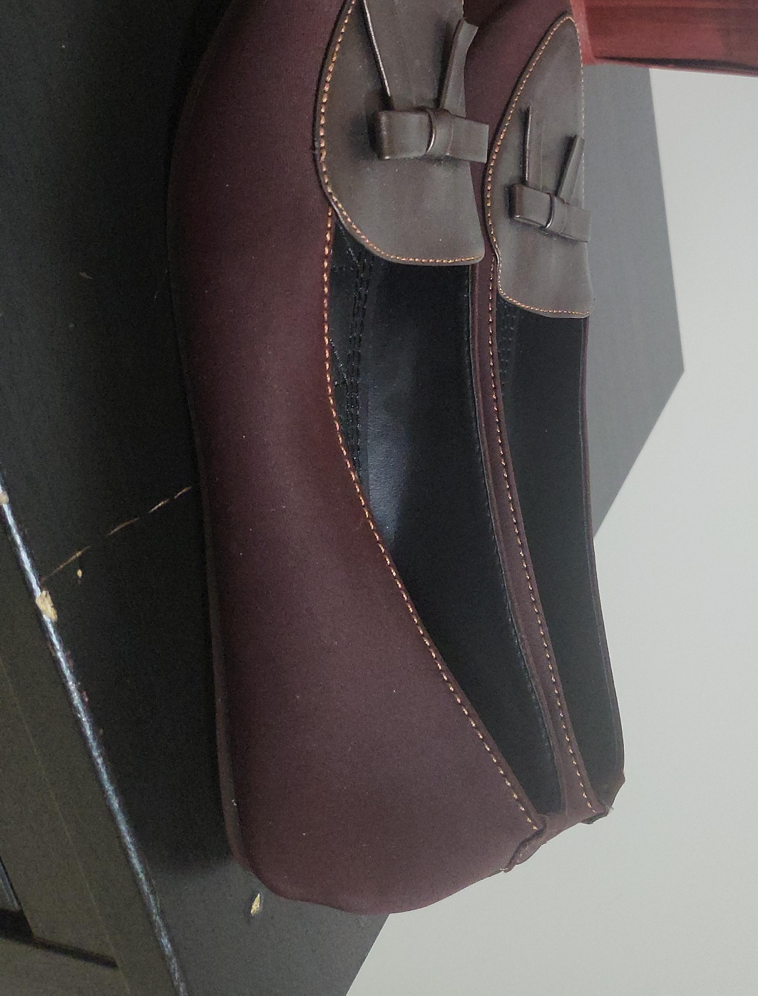 Selling a pair of burgundy loafers with a cute bow detail! These are perfect for adding a touch of class to any outfit. They appear to be in great condition and ready for a new home