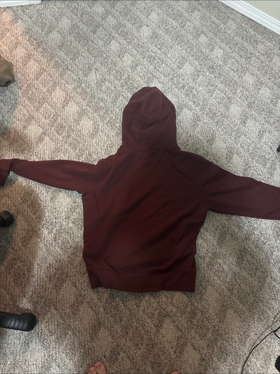 Selling a burgundy hoodie. It's in good condition and perfect for layering or wearing on its own. Feel free to message me with any questions!
