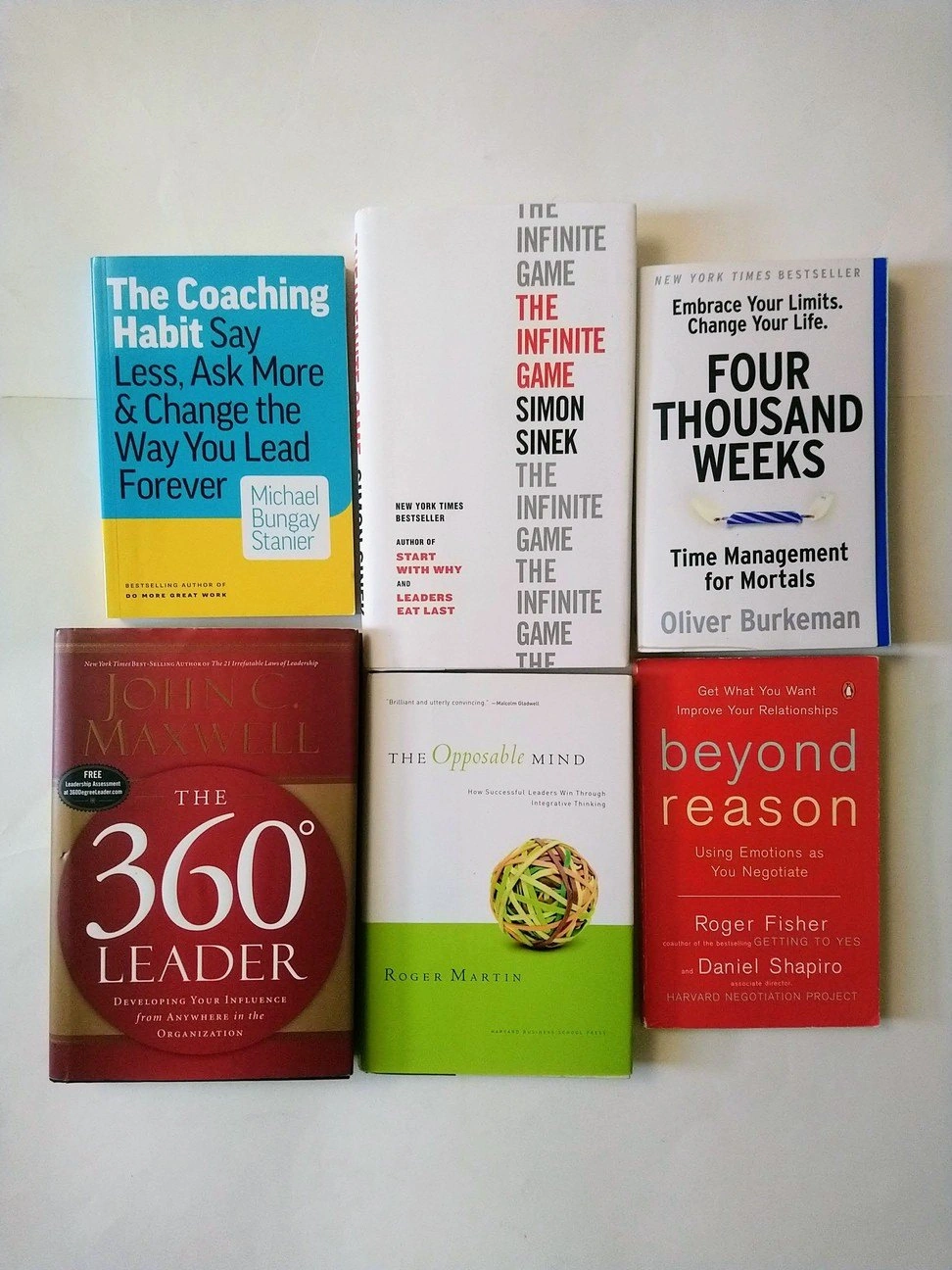 Location: Yonge and College /downtown Toronto Top row: $8 each. Bottom row: $7 each. Cash only; prices are firm. - The Coaching Habit: Say Less, Ask More, & Change the Way You Lead Forever - Michael Bungay Stanier - The Infinite Game - Simon Sinek - Four Thousand Weeks: Time Management for Mortals - Oliver Burkeman - The 360° Leader: Developing Your Influence from Anywhere in the Organization - John Maxwell - The Opposable Mind: How Successful Leaders Win Through Integrative Thinking - Roger Martin - Beyond Reason: Using Emotions as You Negotiate - Roger Fisher & Daniel Shapiro Feel free to check out my other book posts as well!