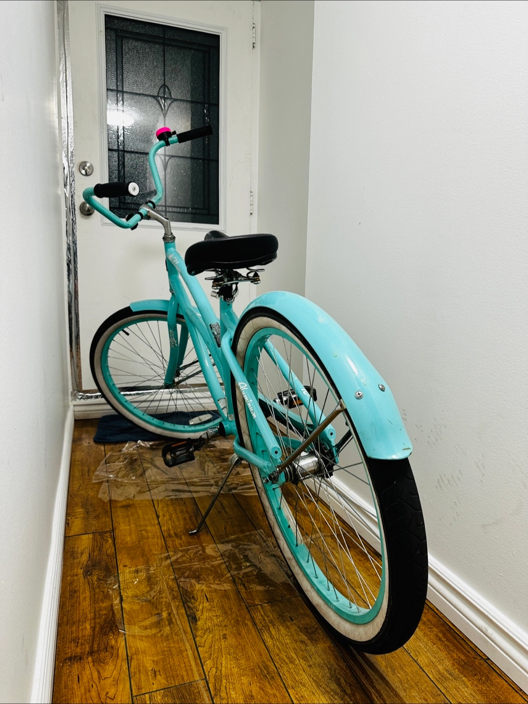 Selling a light green Huffy Cranbrook cruiser bike. It's perfect for leisurely rides around the neighbourhood or along the beach. The bike is in good condition and ready for a new owner to enjoy!