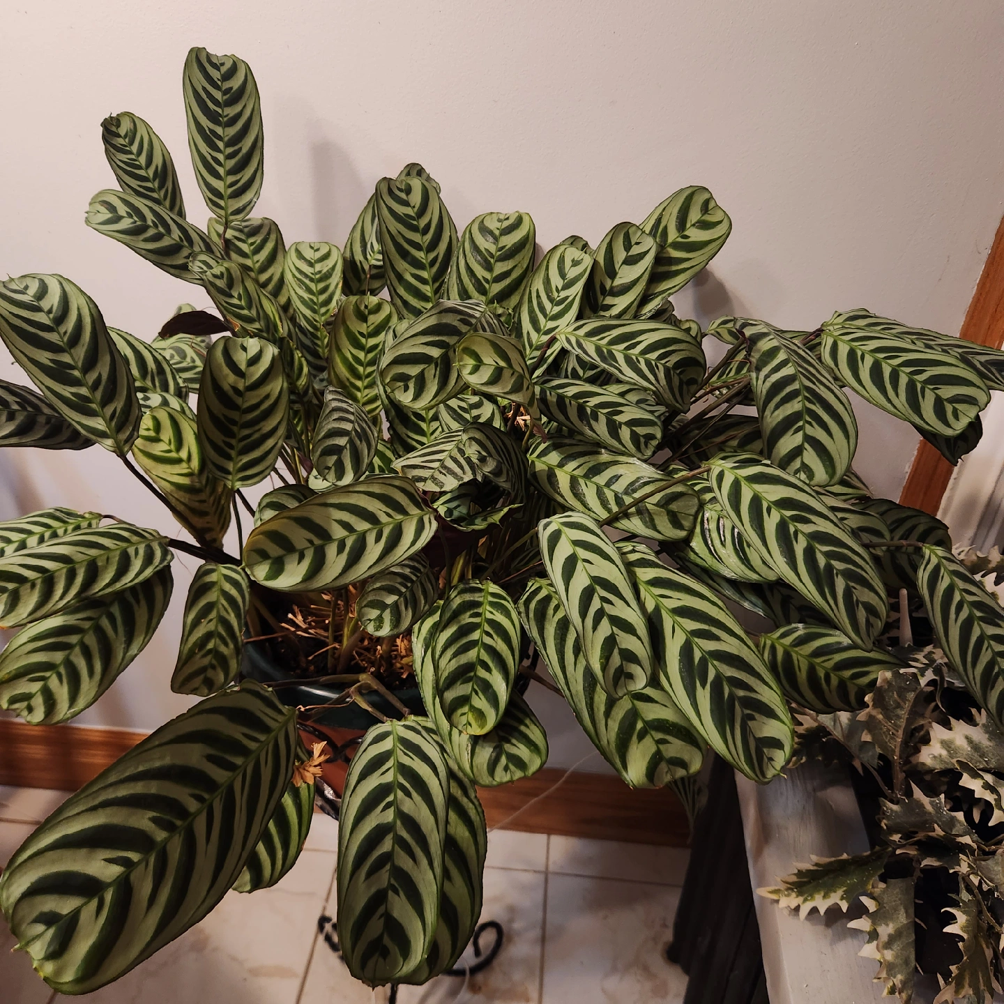 Selling a Calathea Zebrina plant! It has striking zebra-like stripes on its leaves, making it a unique addition to any space. This plant is healthy and well-cared for, ready to brighten up your home