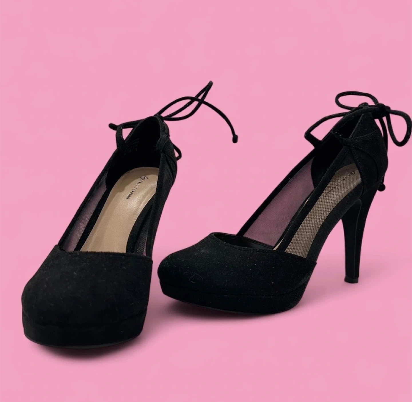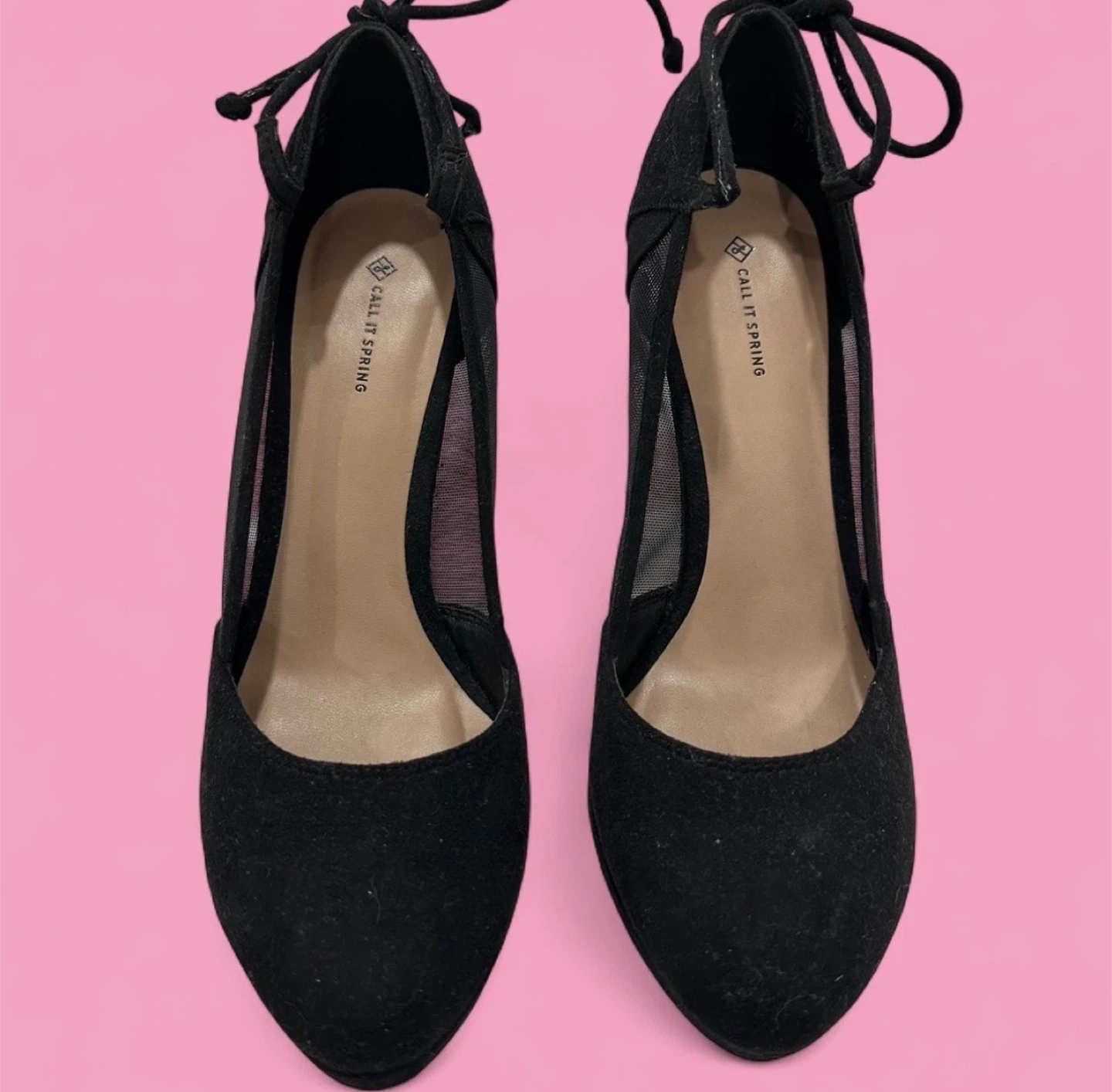 NEVER been worn outside. Selling a pair of Call It Spring black heels in size 7. They feature a stylish design with lace-up detailing and mesh accents. Great for a night out!