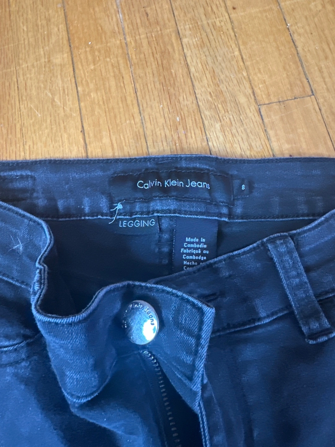 Selling a pair of Calvin Klein Jeans in size 8. They are in good condition and ready for a new home! The style is 'Legging'.