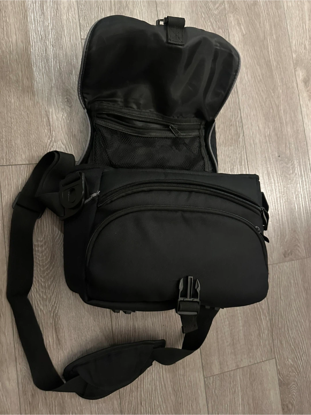 Selling a camera bag in black. It's in good shape ,compartments for lenses and accessories