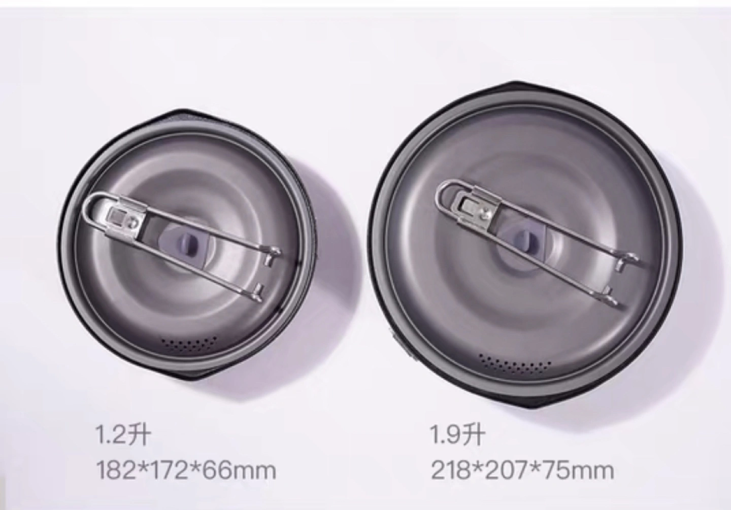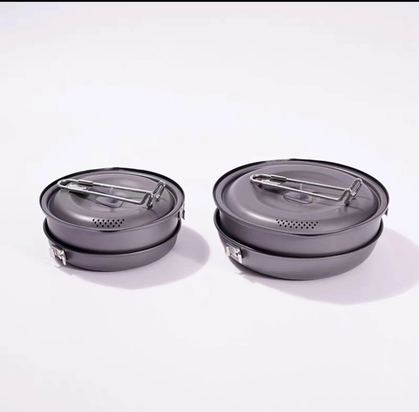 Selling a camping cookware set that's perfect for your outdoor adventures! It's lightweight and portable, making it easy to carry on hikes or camping trips. The set includes multiple pots and pans, all neatly packed in a convenient carrying bag. Great for cooking delicious meals in the great outdoors!