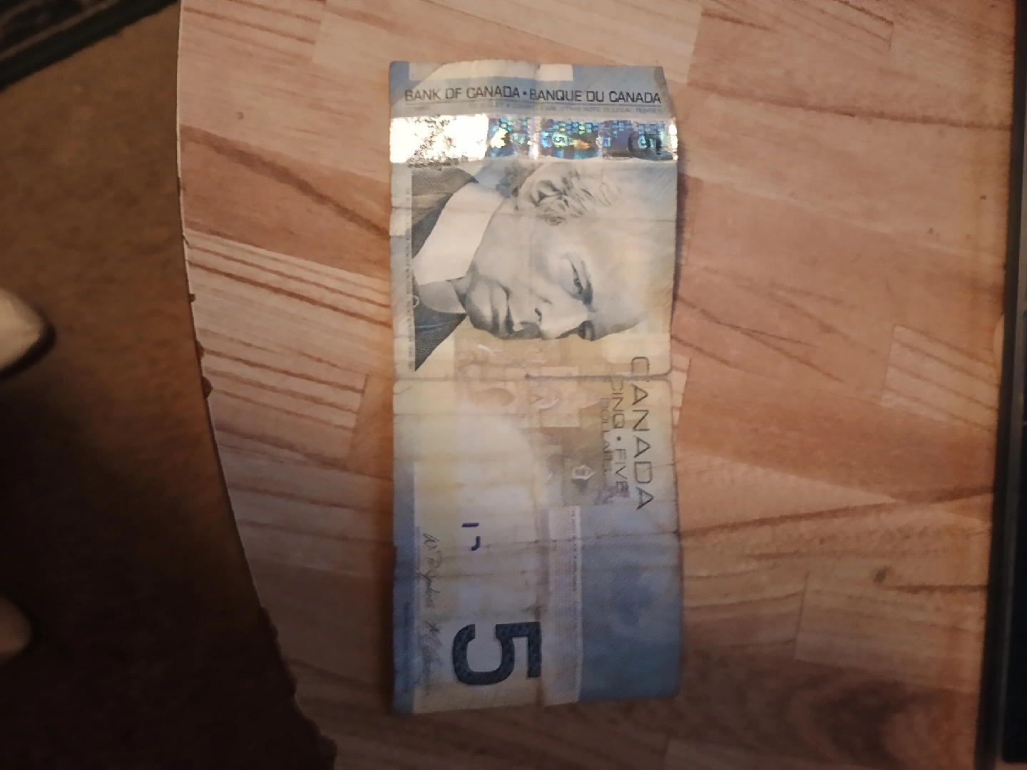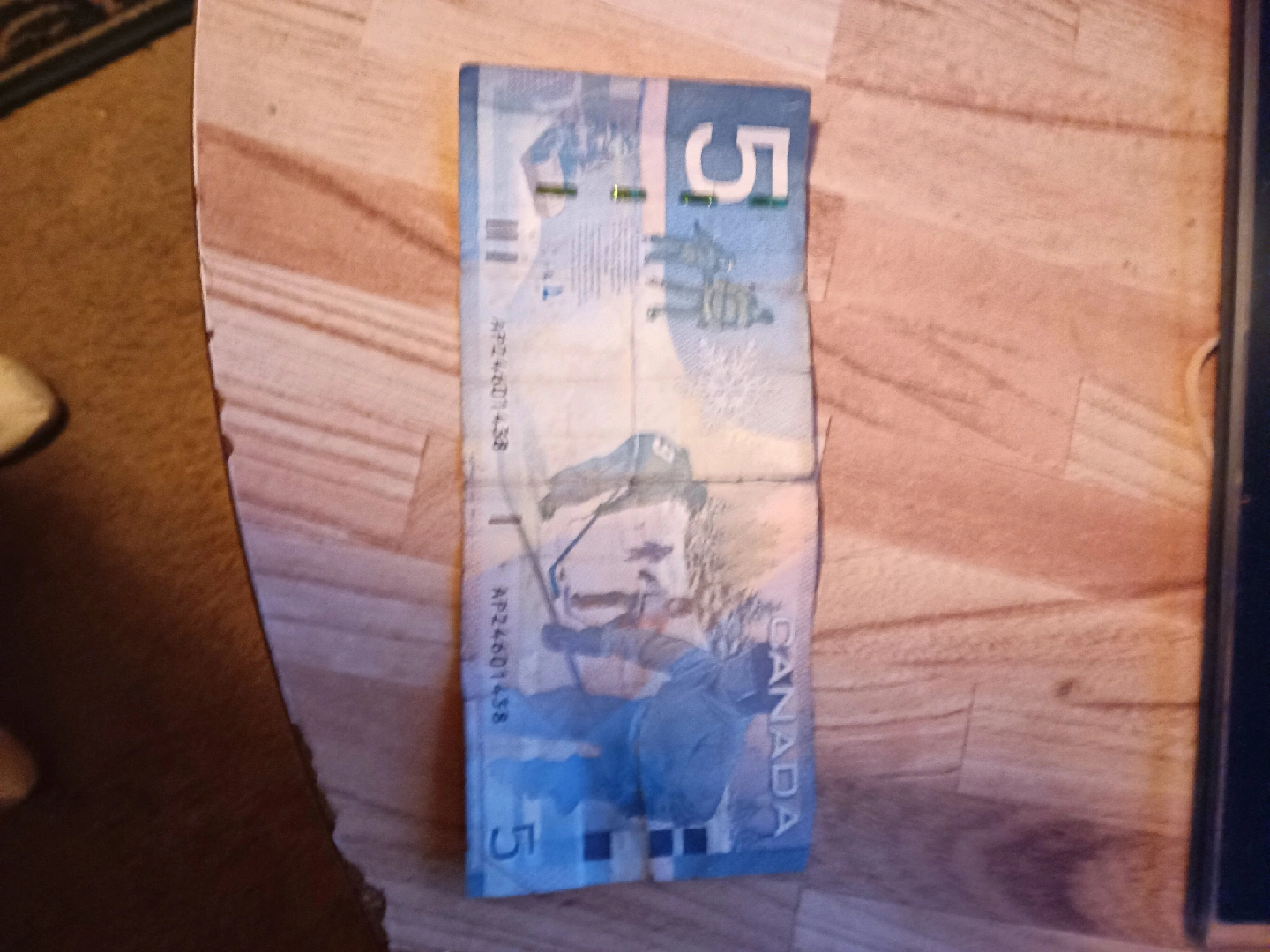 2008 Canadian five dollar bill. Bank of Canada. Serial APZ3601438.