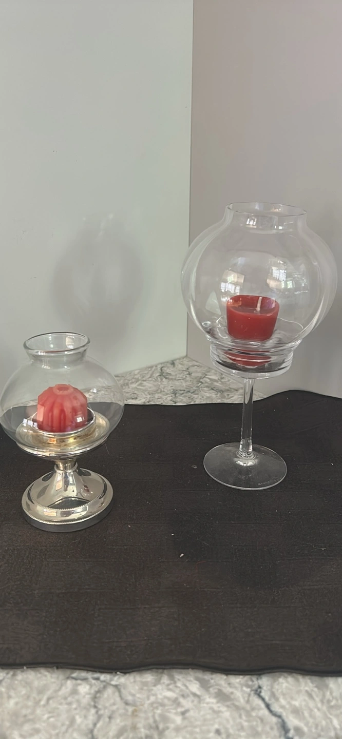 6” Silver and glass hurricane candle holder $5.00 9” Crystal globe candle holder $5.00 Milk glass taper candle holders -pair $5.00 Pick up in Thorold Cash or etransfer