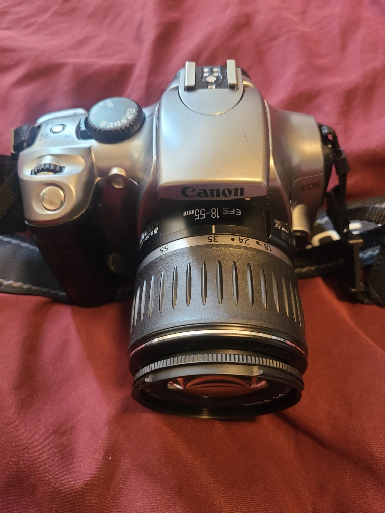 Selling a Canon EOS Digital Rebel camera. It comes with a Canon Zoom Lens EF-S 18-55mm lens, 1:3.5-5.6, Canon lens cap, battery and charger. Also included is a 8GB Compact flash memory card.