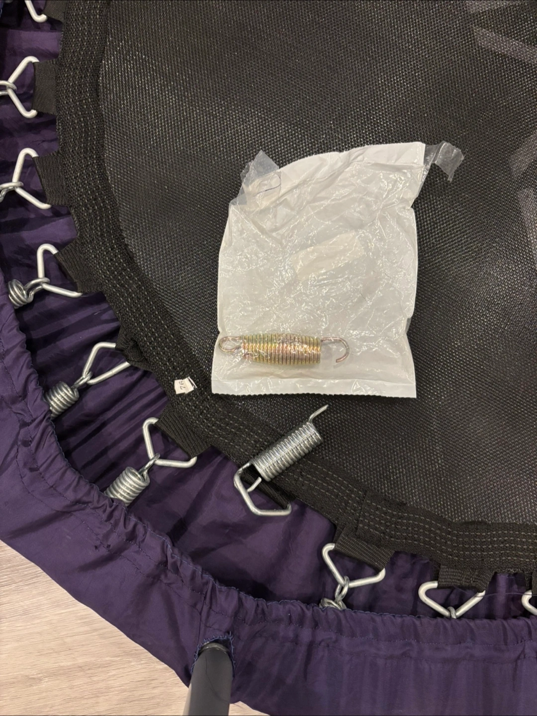 2 springs are broken Including 1 new spring to replace Rest of trampoline is in great condition