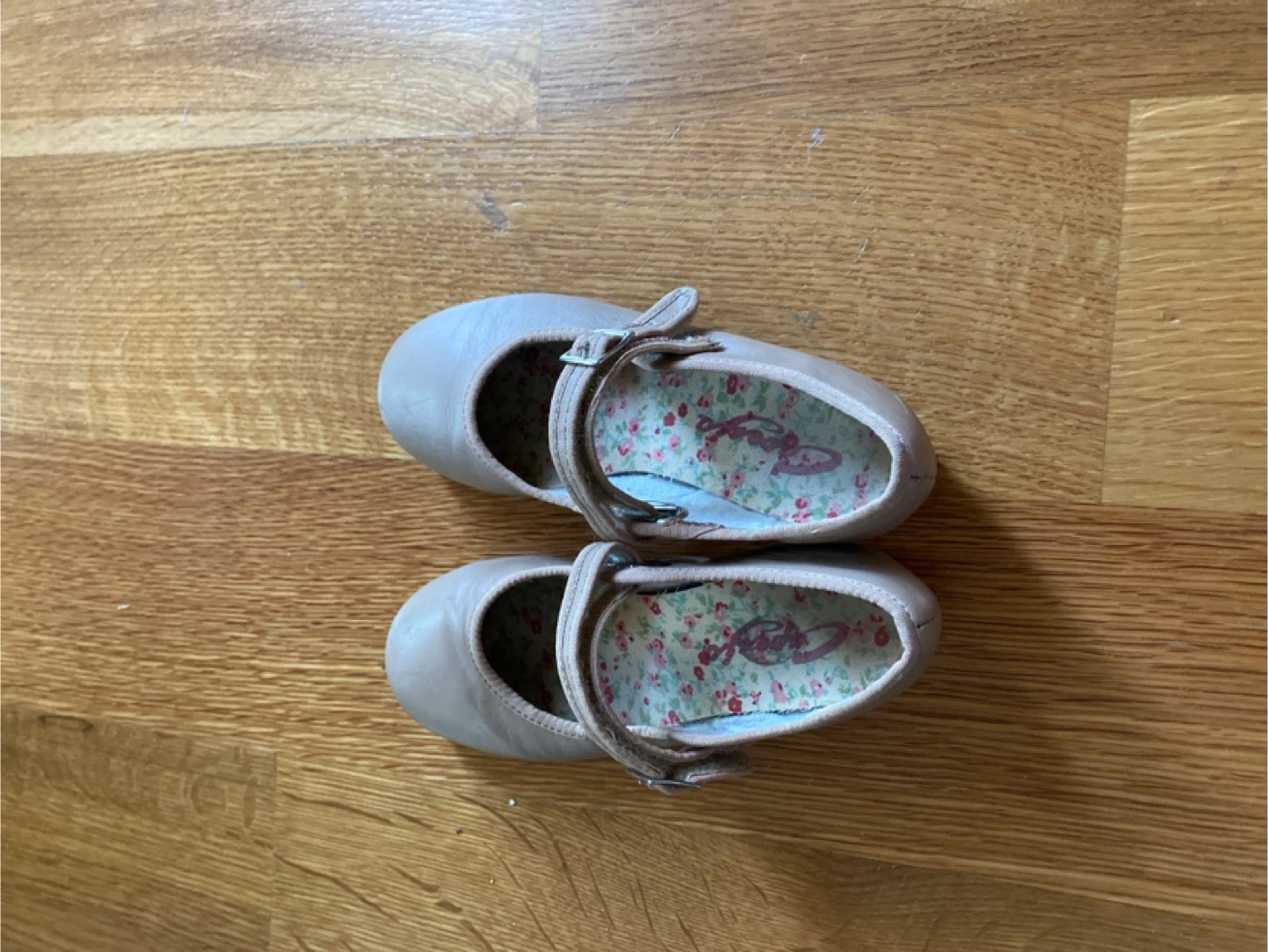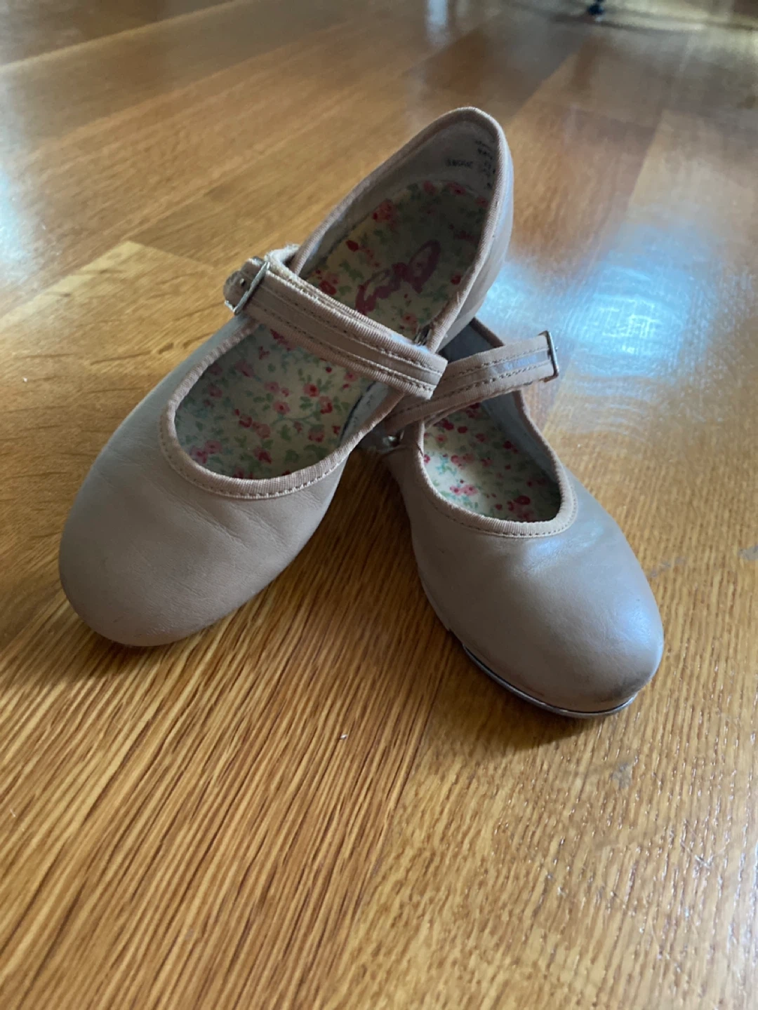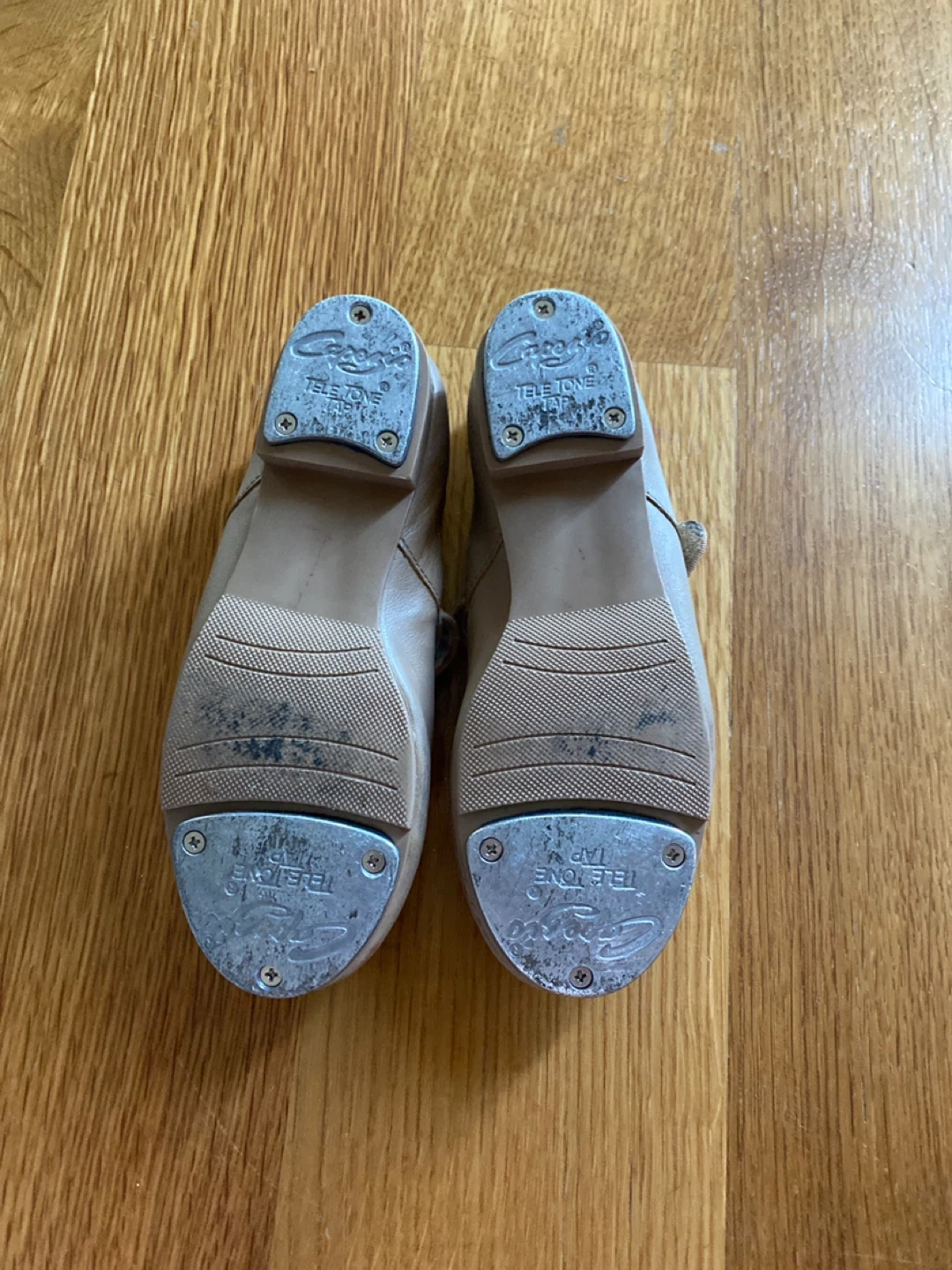 Selling a pair of Capezio tap shoes in beige. They're in good condition and ready for a new dancer! Size 9.