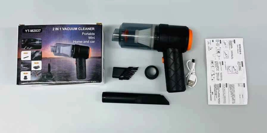 Brand new Mini Car Vacuum Cleaner with Air Blower 2 in 1 model. It's 6000PA powerful, 2200mah Battery and comes with a couple of attachments and a USB charging cable.