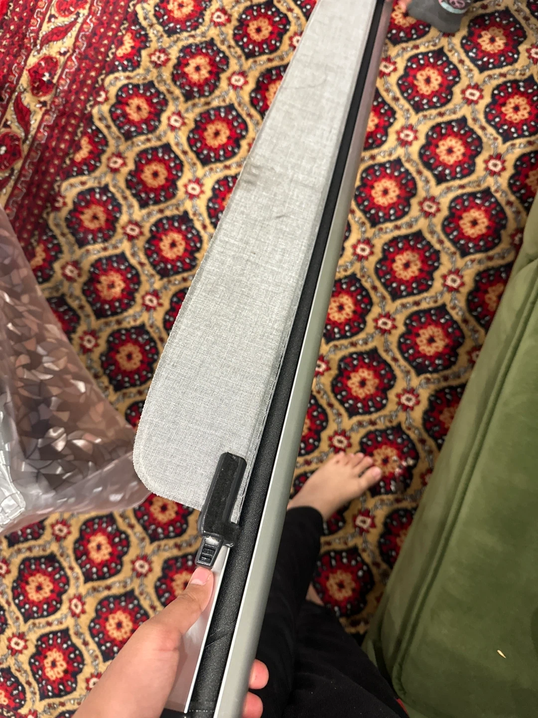 Selling a car rear cargo cover in black. It's in great condition and ready to use! Perfect for keeping items in your trunk hidden and secure for mitsbushi outlander
