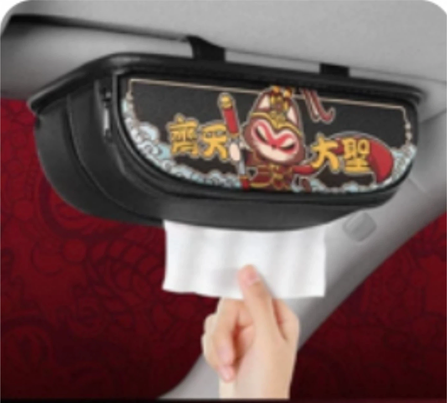 Keep your car tidy with this cute tissue holder! It features a fun Monkey King design and is perfect for keeping tissues handy while you're on the road